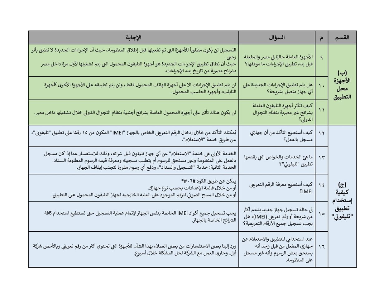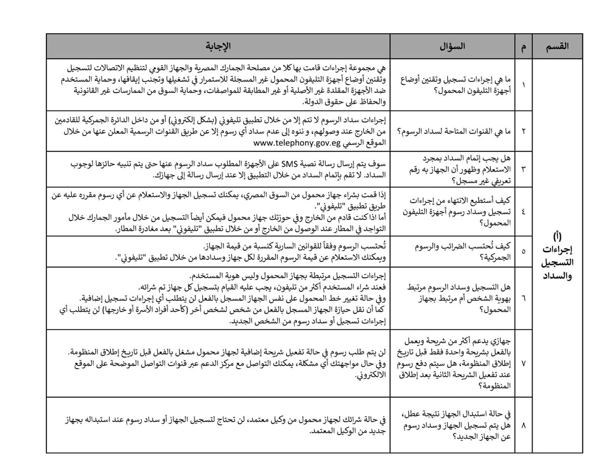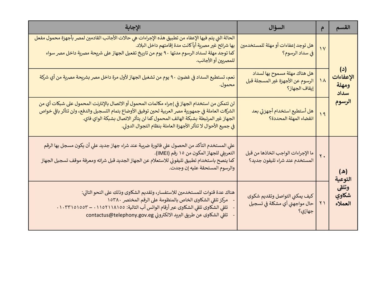 علي المستخدم التأكد من الحصول علي فاتورة ضريبة عند شراء جهاز جديد علي أن يكون مسجل بها الرقم التعريفي للجهاز المكون من ١٥ رقم (IMEI).
