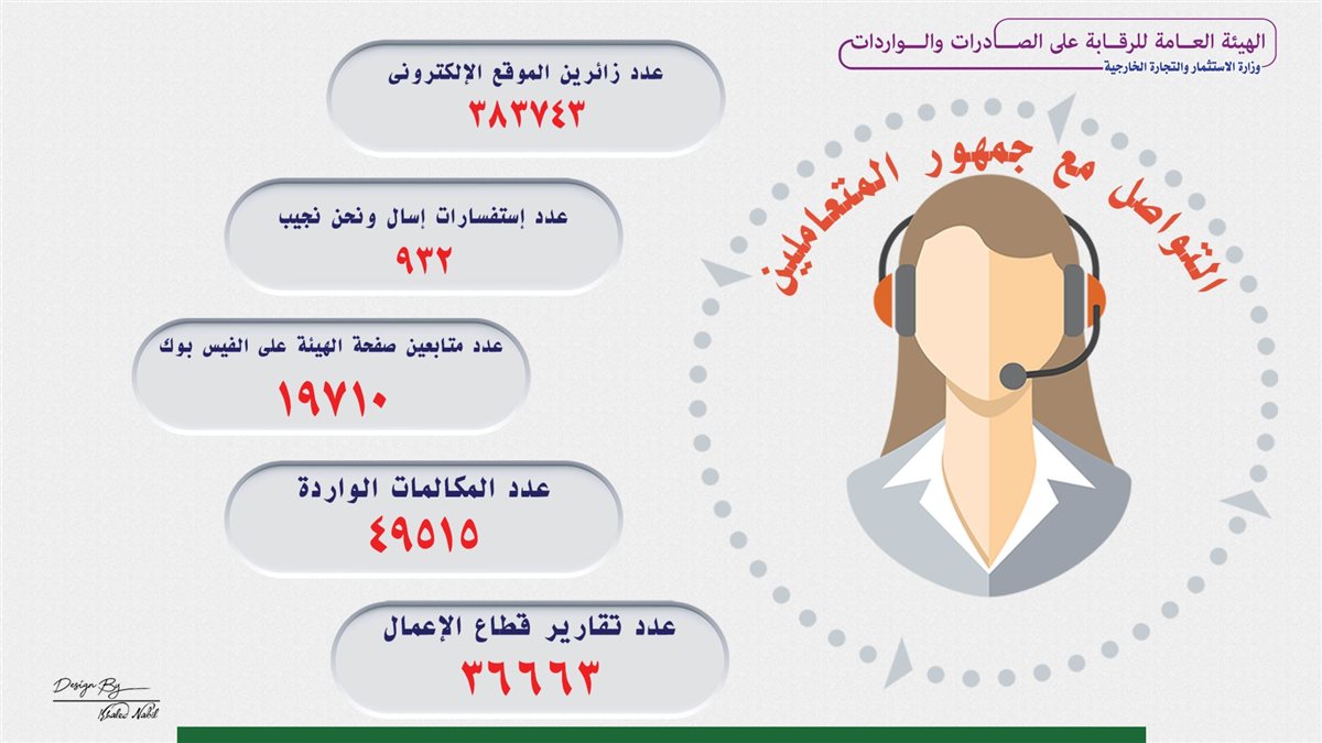 وقالت الرقابة على الصادرات إن عدد المكالمات الواردة للهيئة بلغت 49515 مكالمة، وبلغ عدد تقارير قطاع الأعمال 36663 تقريرا