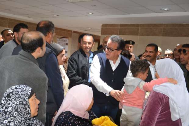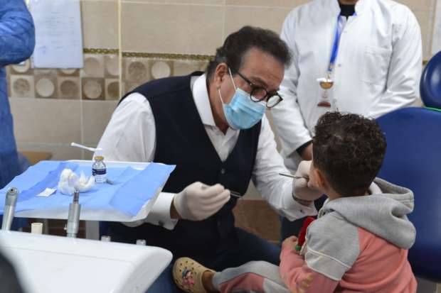 شاهده يبكي، وزير الصحة يفحص حالة طفل يعاني من ألم الأسنان خلال جولته في الغربية (صور)