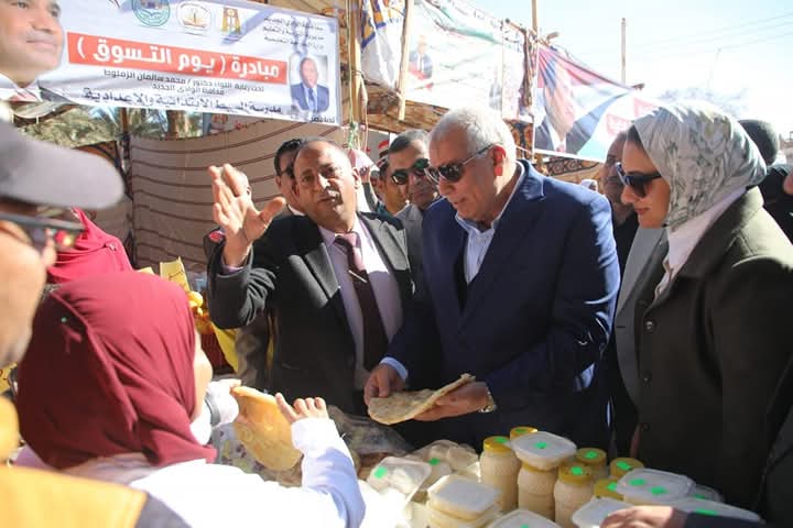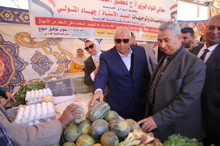 محافظ الوادي الجديد يفتتح سوق اليوم الواحد بالخارجة (فيديو)