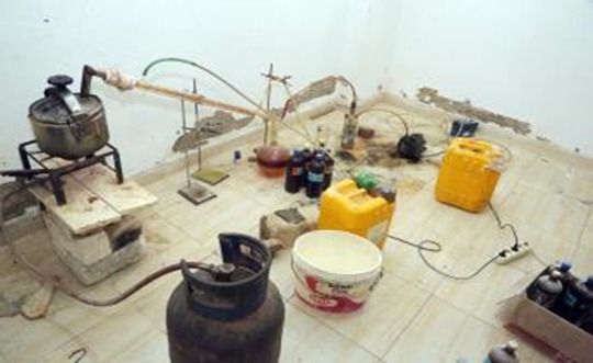 وضبط بحوزتهم (50 ألف قرص مخدر – 200 كيلو جرام "من بودرة الأقراص المخدرة" تعادل "1,2 مليون قرص مخدر" - كميات كبيرة من الزيوت والمواد الكيميائية المخدرة - مبالغ مالية "عملات محلية وأجنبية").