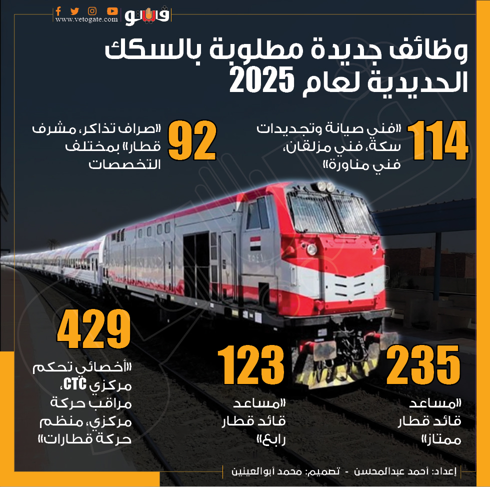 وظائف جديدة مطلوبة بالسكك الحديدية لعام 2025 (إنفوجراف)