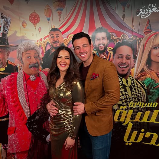 رافق الإعلامي رامي رضوان زوجته دنيا سمير غانم فى أول ليلة عرض لمسرحيتها الجديدة المعنونه بــ “مكسرة الدنيا” بالمملكة العربية السعودية.