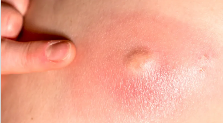 خراج الجلد: هذه كتلة مستديرة مملوءة بالصديد تحدث غالبًا بسبب العدوى البكتيرية، وغالبًا ما يتضمن العلاج تصريفًا ومضادات حيوية.