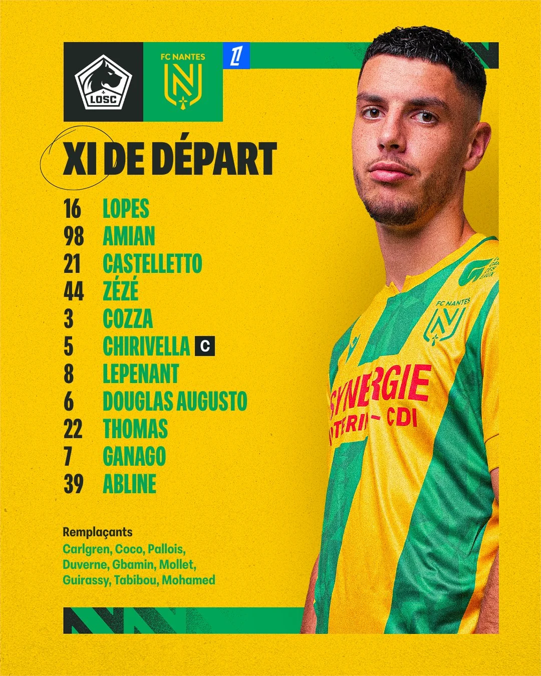 ويخوض أنطوان كومباريه المدير الفني لفريق نانت، تشكيل فريقه بكلا من: