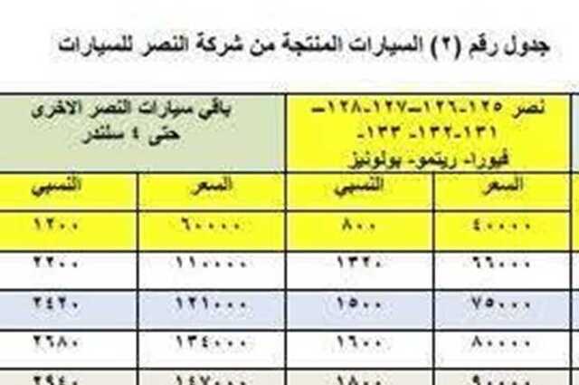 تعرف على رسوم تسجيل سيارات شركة النصر الأقل من 4 سلندر في 2025