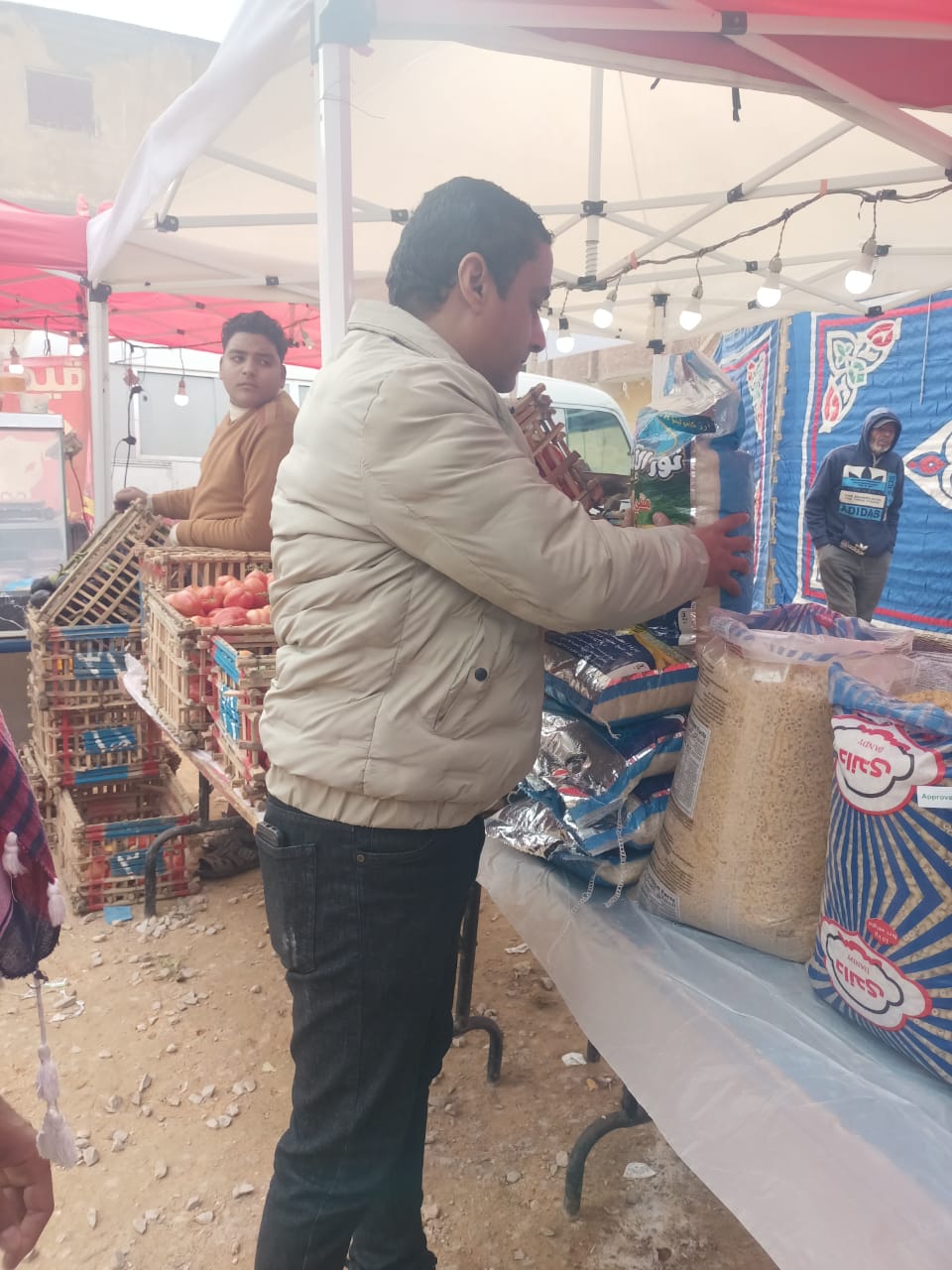 كما تم تفقد جميع باكيات السوق واستعراض السلع الغذائية المعروضة والأسعار المخفضة الموجودة على كل سلعة قبل وبعد التخفيض وكذلك جودة السلع والتى تميزت بجودة عالية وأسعار بتخفيضات حقيقية عن مثيلتها بالأسواق.