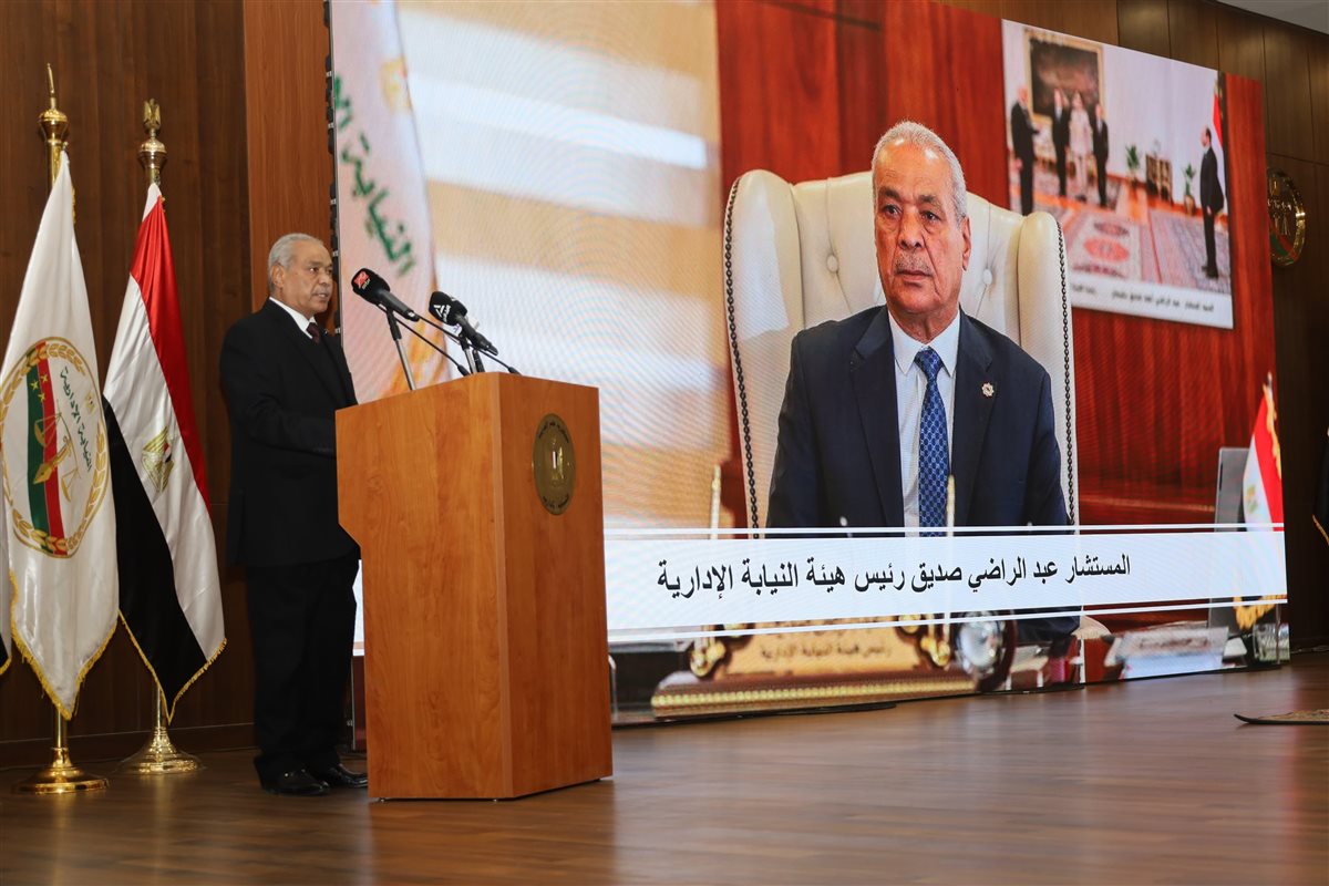وفي كلمته رحب المستشار عبد الراضي صديق رئيس هيئة النيابة الإدارية، بالحضور الكريم مؤكدًا على أن الدولة المصرية ومع تأسيس الجمهورية الجديدة، وتحت القيادة الحكيمة للرئيس عبد الفتاح السيسي رئيس الجمهورية، سارت بخُطى واسعة نحو التحول الرقمي الشامل، وتَبَلوَر ذلك من خلال الاستراتيجية الوطنية للتنمية المستدامة "رؤية مصر ٢٠٣٠" والتي تُجَسد رؤية تَعبُر بمِصر لعالم رقمي جديد تحكمه معايير مختلفة تتطلب العمل الجاد والعلم والمعرفة، عبر مجموعة من الأدوات المتمثلة في: تطوير البِنية التَحتِية، وتعزيز الشمُول الرقمي، وتحقيق الشمُول المالي، وبناء القدرات وتشجيع الابتكار، ومحاربة الفساد، وضمان الأمن المعلوماتي، وتعزيز مكانة مصر على المستويين الإقليمي والدولي. وأن النيابة الإدارية لم تكن ببعيدة عن هذا الملف الحيوي، حيث تبرز أهمية التحول الرقمي داخل مؤسسات العدالة على وجه الخصوص باعتباره عامل حيوي في تحقيق العدالة الناجزة وتوفير الوقت والجهد والتكلفة ومكافحة الفساد، وبما يحقق أهداف الاستراتيجية الوطنية للتنمية المستدامة، فكان بَاكُورة ذلك ما نشهده اليوم من مشروعات عملاقة شملت منظومة الانتخابات المُمَيكنة والتصويت الإلكتروني التي تشكل طَفرةً كبرى في مفهوم العملية الانتخابية بأسرها توفر من خلالها العديد من الضمانات والوقت والجهد والتكلفة، فضلًا عن تطوير شامل لآلية تلقي شكاوى المواطنين من خلال برنامج الشكاوى الحكومية وقياس الأداء، وإطلاق خدمة استقبال الشكاوى عن طريق الرسائل التَفَاعُلية، وهو ما تُوليه النيابة الإدارية أهمية كبرى إعلاءً لحق الشكوى المكفول دستوريًا. موضحًا أن كل ما شهدته النيابة الإدارية من إنجازاتٍ - لم يكن يكلل بالنجاح لولا الشراكة الفاعلة والحقيقية مع وزارة التخطيط والتنمية الاقتصادية وما قدمته الوزارة من جهود فاعلة كان لها أبلغ الأثر في أن ترى تلك المشروعات النور لتخطو بها النيابة الإدارية خطوات سيسجلها التاريخ ضمن التطوير الشامل لمنظومة العدالة المصرية، متقدمًا بوافر الشكر والتقدير لمعالي الوزيرة الدكتورة/ رانيا المَشَّاط - وزيرة التخطيط والتنمية الاقتصادية والتعاون الدولي على التعاون المستمر والمتواصل بين النيابة الإدارية والوزارة، والذي كان من نتائجه ما نشهده اليوم من إنجازات كبرى في هذا الصدد.