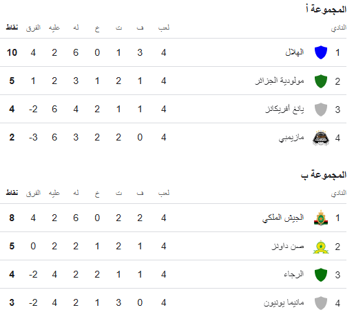 ترتيب مجموعات دوري أبطال إفريقيا بعد الجولة الرابعة