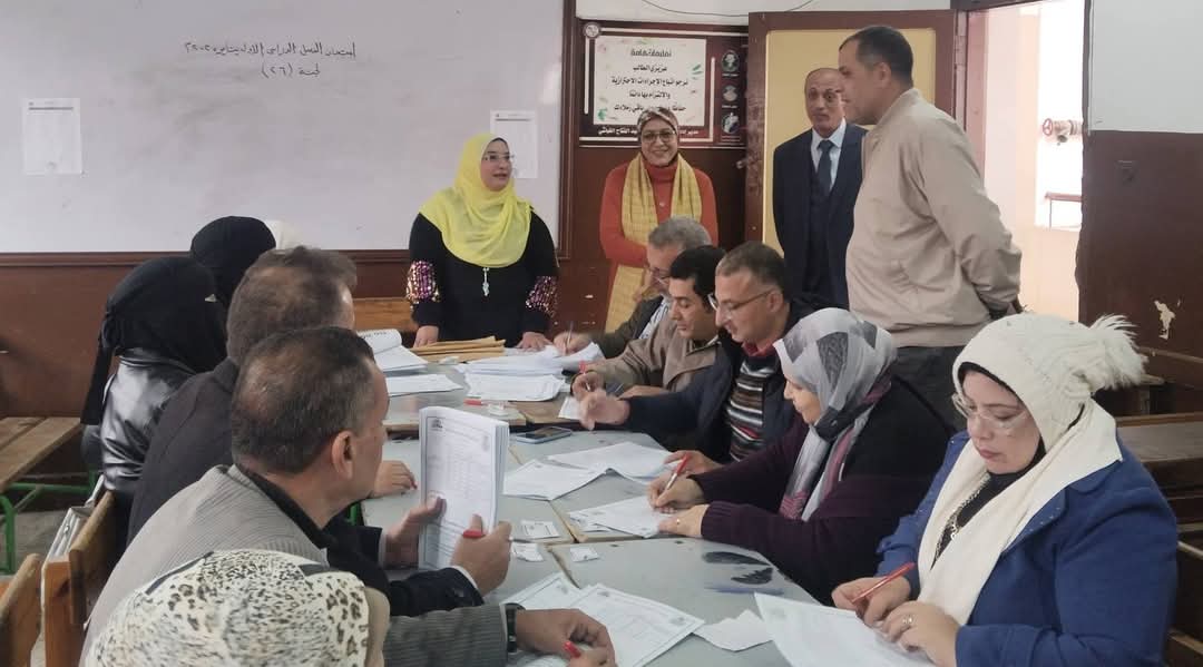 مدير تعليم دمياط يتفقد تصحيح امتحانات المستوى الرفيع للشهادة الإعدادية