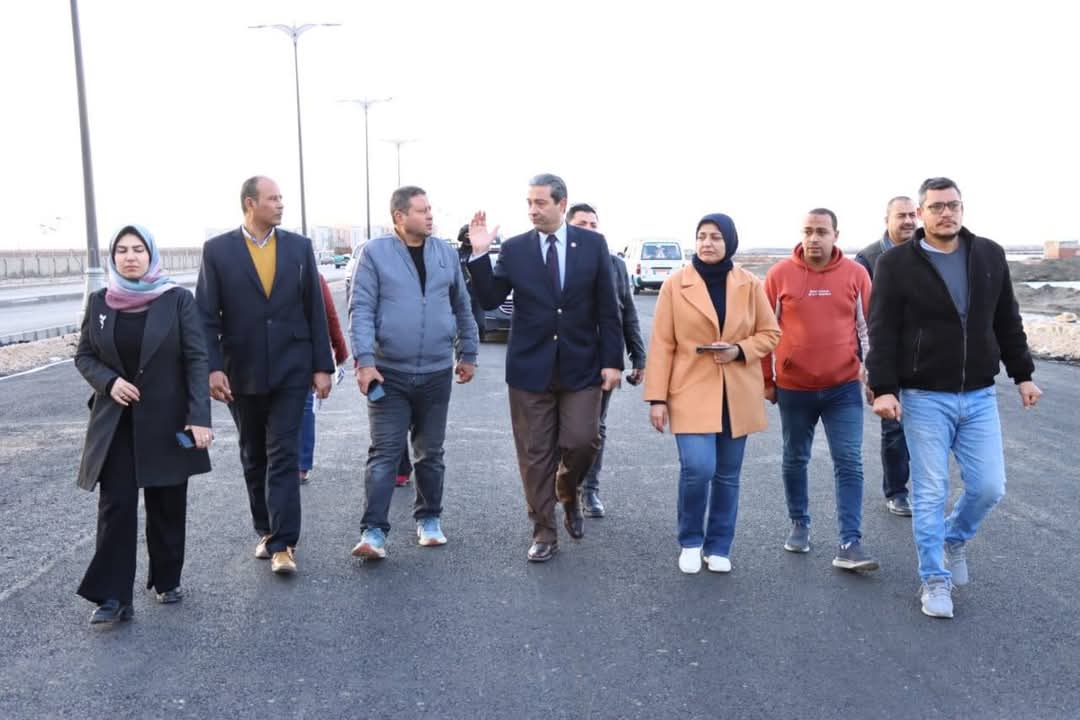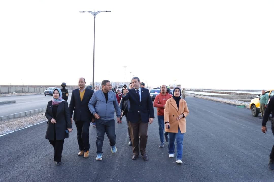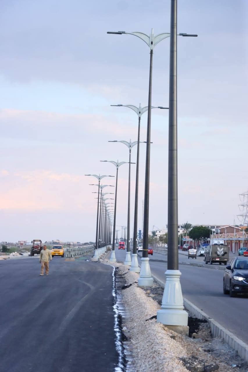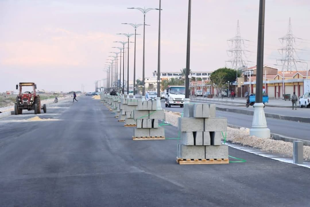 وتابع " المحافظ " خطة رصف الطريق بالأسفلت وكذا الموقف التنفيذى الحالى بهذا المشروع الذى يتضمن التطوير الشامل للطريق بدايةً من نقطة التقاء المدخل مع الطريق الدولى الساحلي بطول ٢٨٠٠ متر طولى ليصبح كل اتجاه ٣ حارات مرورية بعرض ٣.٣ متر للحارة الواحدة بإجمالى ١٠.٧ متر للاتجاه الواحد.