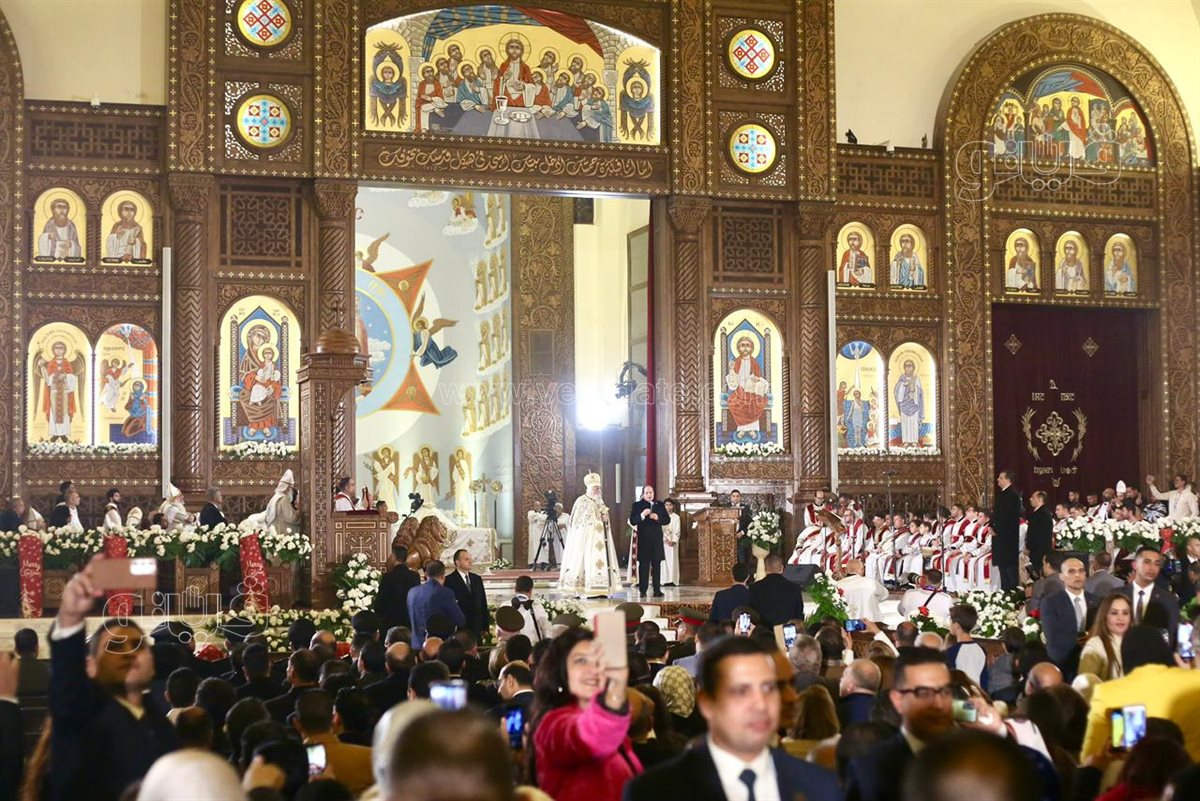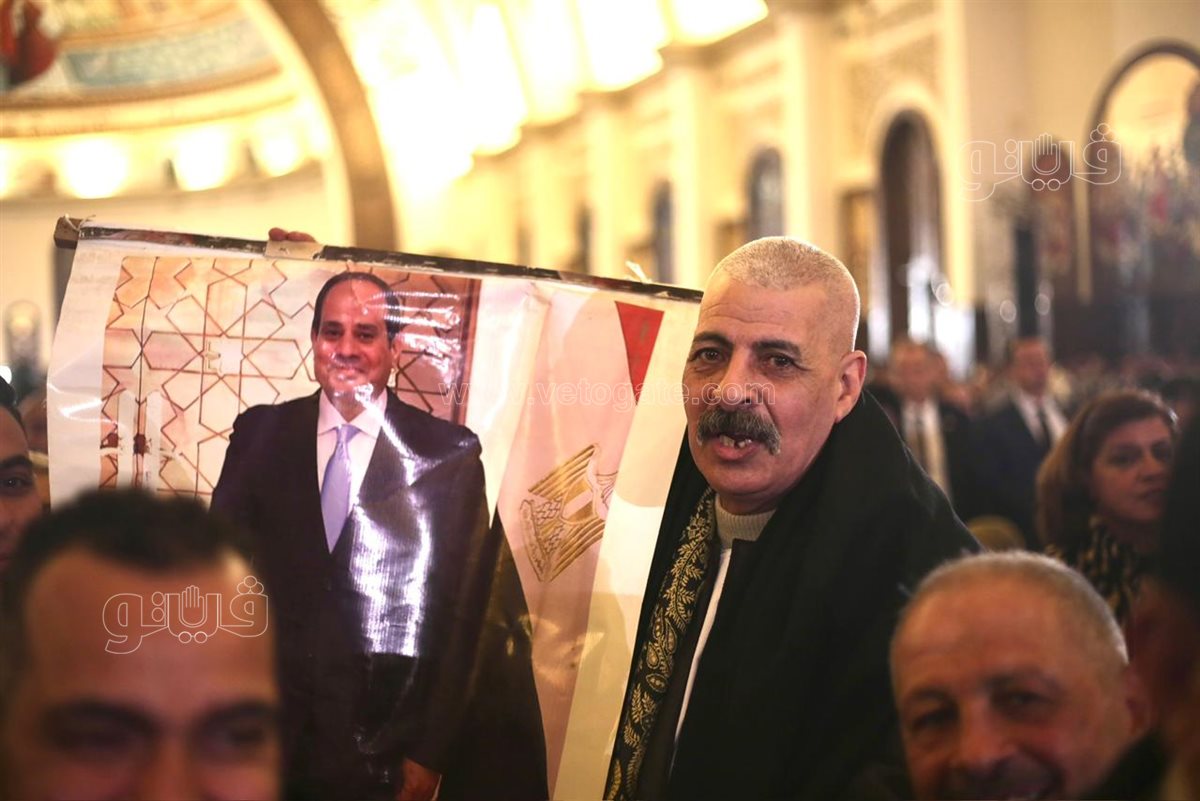 السيسي يصافح الأقباط بكاتدرائية ميلاد المسيح
