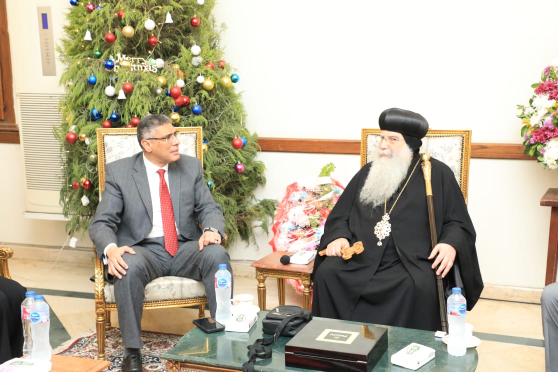 محافظ الجيزة يزور مقر مطرانية شمال الجيزة للتهنئة بعيد الميلاد
