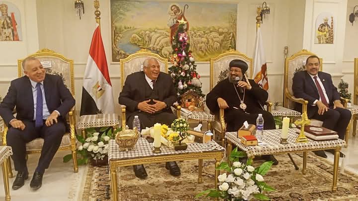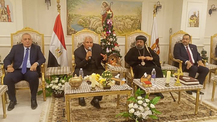 ومن جانبه زار اللواء دكتور محمد الزملوط محافظ الوادي الجديد، صباح اليوم، كنيسة السيدة العذراء بالخارجة؛ وذلك لتقديم التهنئة بعيد الميلاد المجيد لنيافة الأنبا أرسانيوس أسقف الوادي الجديد والواحات وراعي الكنيسة وأهالي المحافظة من الأقباط، يرافقه اللواء محمد حامد مساعد وزير الداخلية لأمن المحافظة، والعميد هيثم عبده المستشار العسكري بالمحافظة، ولفيف من القيادات الأمنية والشعبية والتنفيذية بالمحافظة.