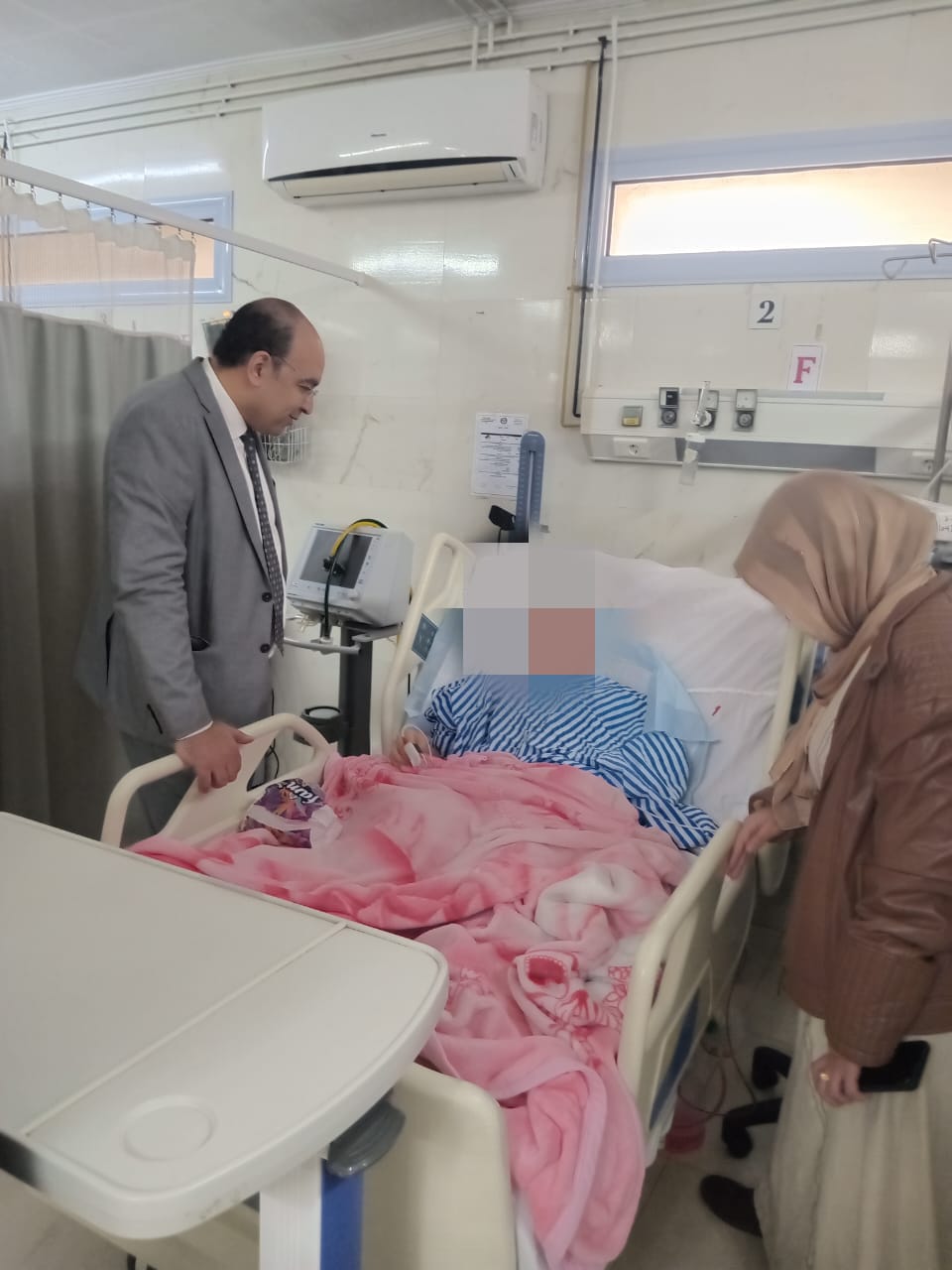 وحرص وكيل الوزارة خلال الزيارة على الاطمئان على الطبيبة رحاب صبرى المصابة في حادث القطار واستمع لشرح مفصل من الطاقم الطبى حول تطورات الحالة.