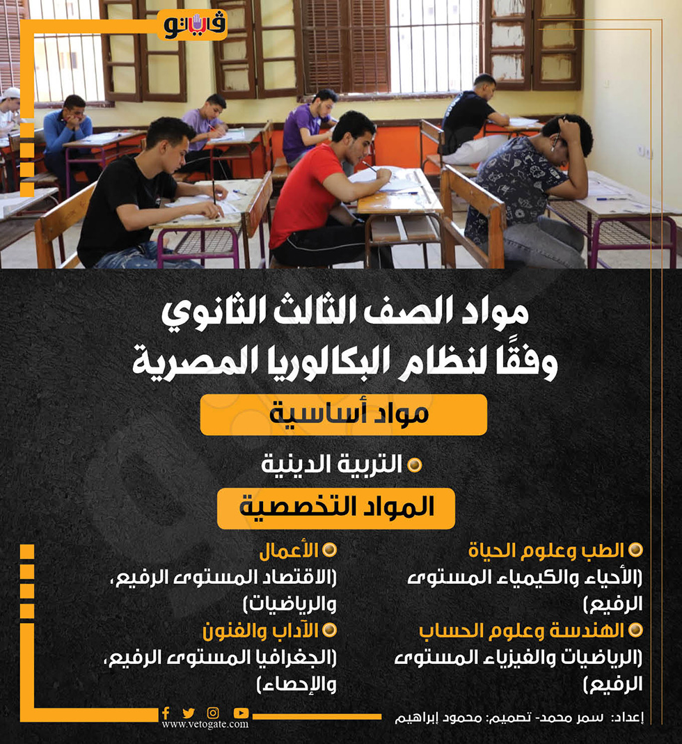 مواد الصف الثالث الثانوي وفقًا لنظام البكالوريا المصرية (إنفوجراف)