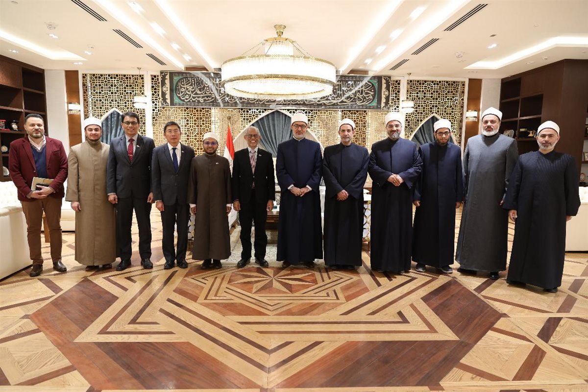مفتي الجمهورية يبحث مع وفد سنغافوري رفيع المستوى التعاون في تأسيس كلية للدراسات الإسلامية