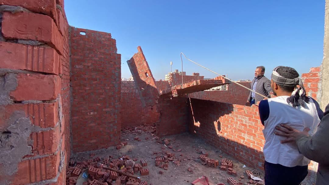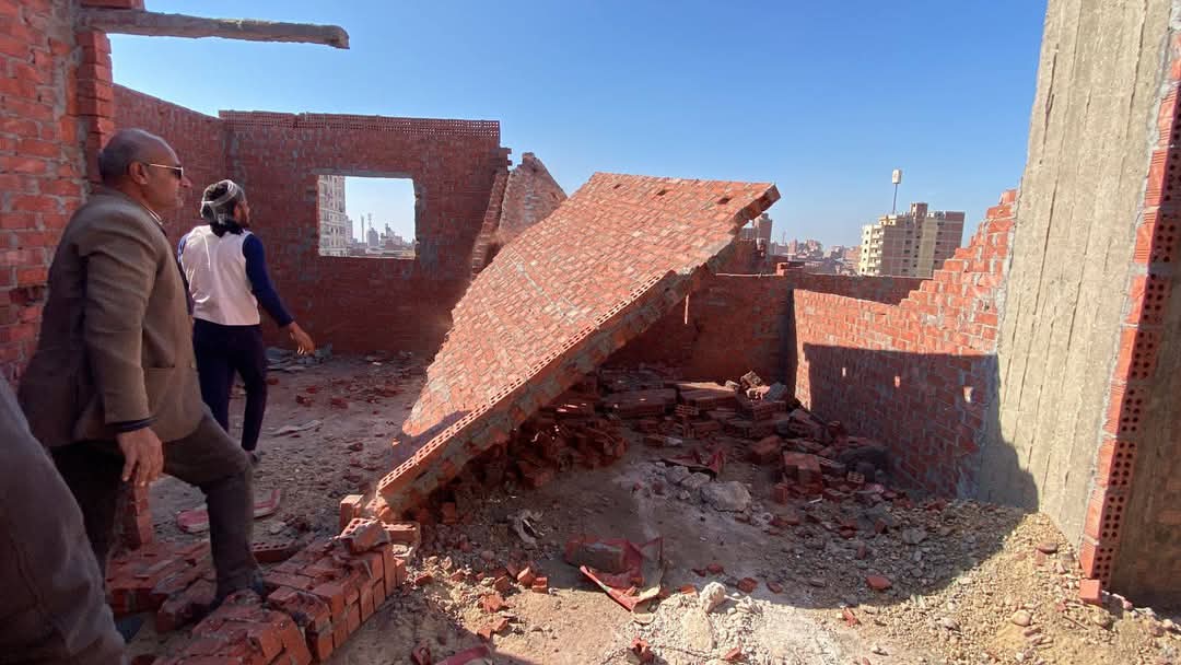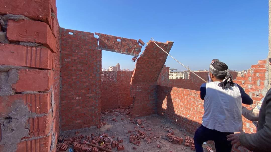 إيقاف الأعمال وإزالة للدور السادس العلوي لعقار مخالف خلف مقابر المنصورة