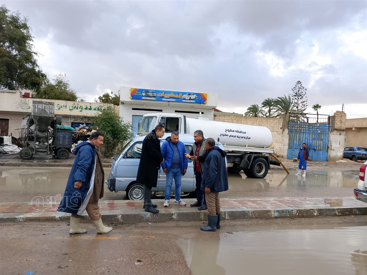 يأتي ذلك تنفيذا لتوجيهات اللواء خالد شعيب محافظ مطروح بسرعة التعامل مع تجمعات مياه الأمطار.