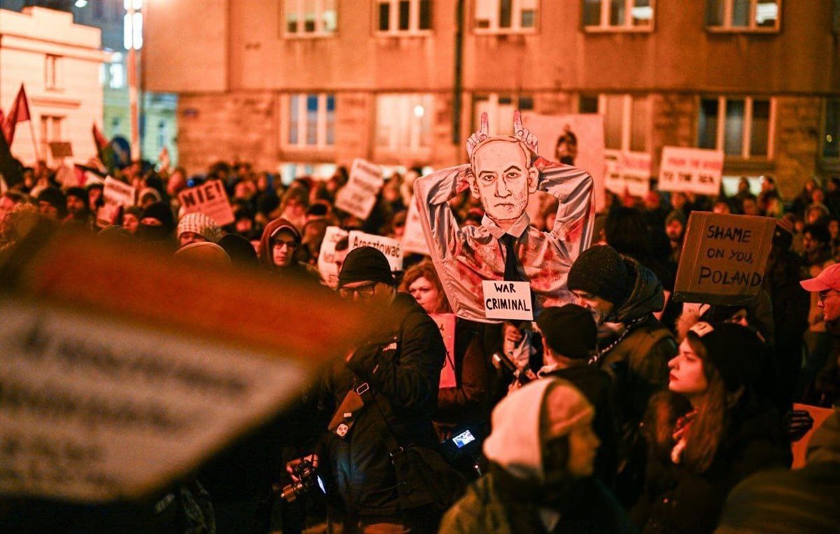 خرجت مظاهرة في العاصمة البولندية وارسو احتجاجًا على قرار الحكومة السماح لرئيس الوزراء الإسرائيلي بنيامين نتنياهو بالمشاركة في احتفال الذكرى 80 لتحرير معسكر الاعتقال النازي أوشفيتز.