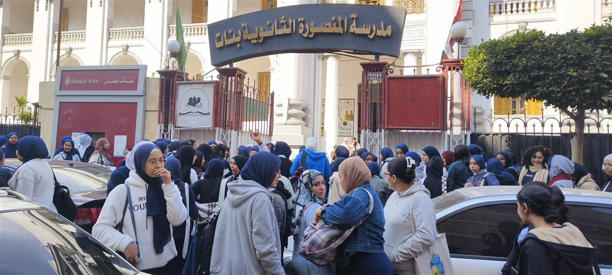 ورصدت فيتو خروج طالبات الصف الثاني الثانوي من مدرسة الثانوية بنات في منطقة المختلط بمدينة المنصورة.