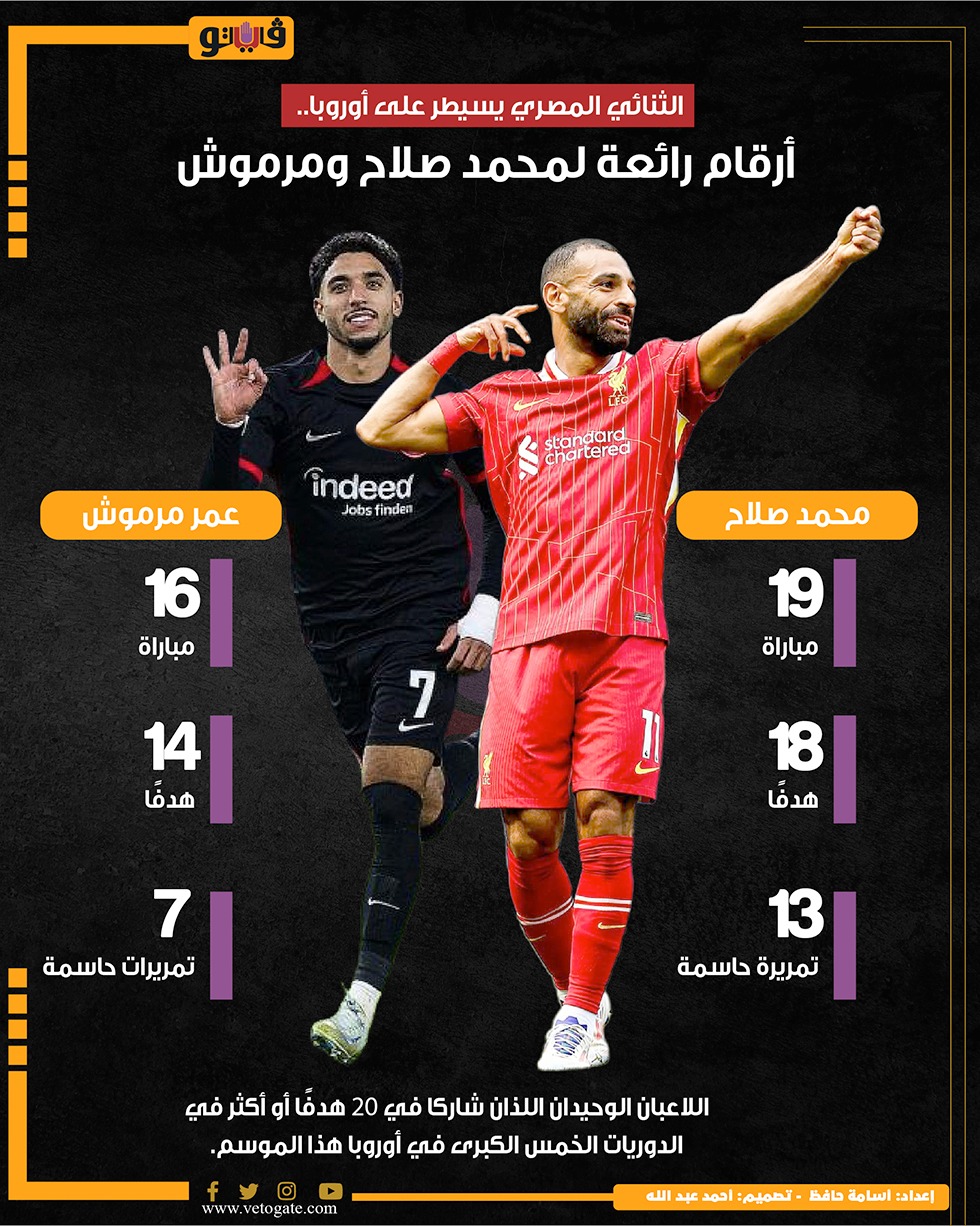 الثنائي المصري يسيطر على أوروبا.. أرقام رائعة لمحمد صلاح ومرموش (إنفوجراف)