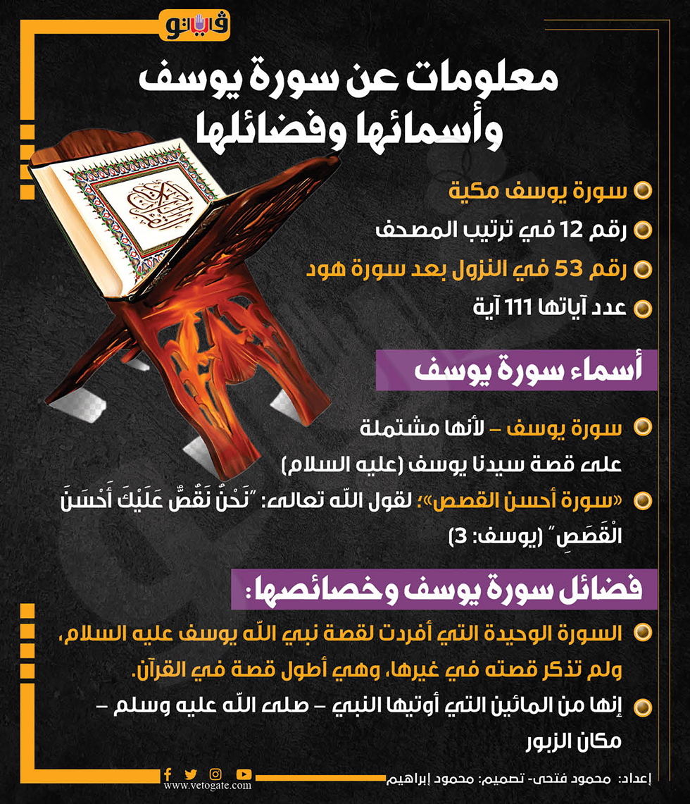 معلومات عن سورة يوسف وأسمائها وفضائلها (إنفوجراف)