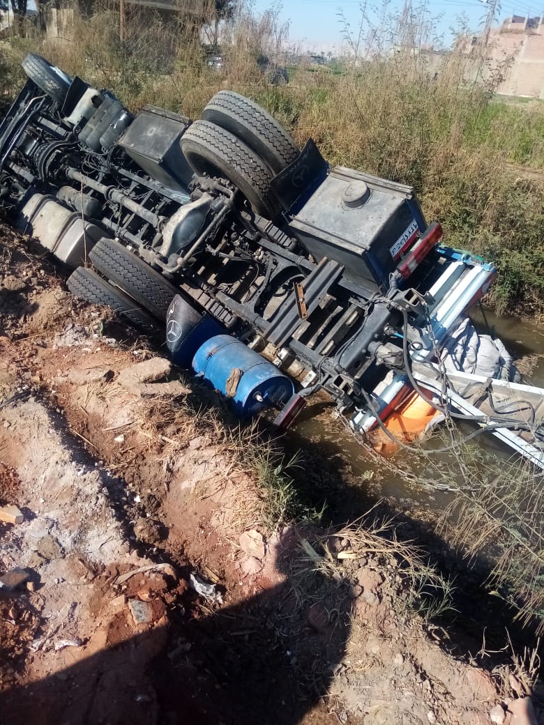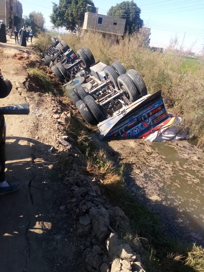 شهدت الطريق الزراعى الغربى انقلاب سيارة بمقطور محملة 65 طن أسمدة في الترعة المجاورة للطريق بمركز المنشاة بسوهاج.