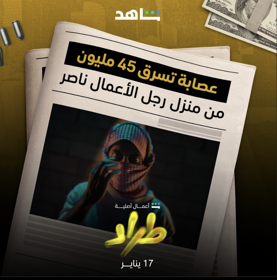 ونشر حساب المنصة على إنستجرام صورة لجريدة وهمي ويتصدر شخص ملثم على الصفحة الرئيسية لها والعنوان يفيد الآتي “عصابة تسرق ٤٥ مليون من منزل رجل الأعمال ناصر” وجاءت الصورة مرفقة بتعليق “أخبار اليوم نار.. #طراد من أعمال شاهد الأصلية 17 يناير على #Shahid”.