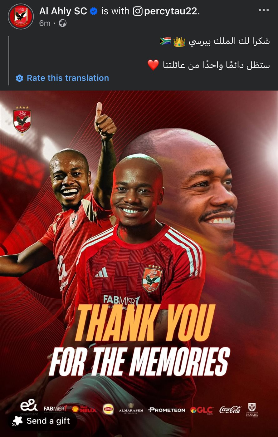 ونشر الحساب الرسمي للنادي الأهلي عبر موقع التواصل الاجتماعي فيسبوك صورة لـ بيرسي تاو: “شكرا لك الملك بيرسي، ستظل دائمًا واحدًا من عائلتنا”.