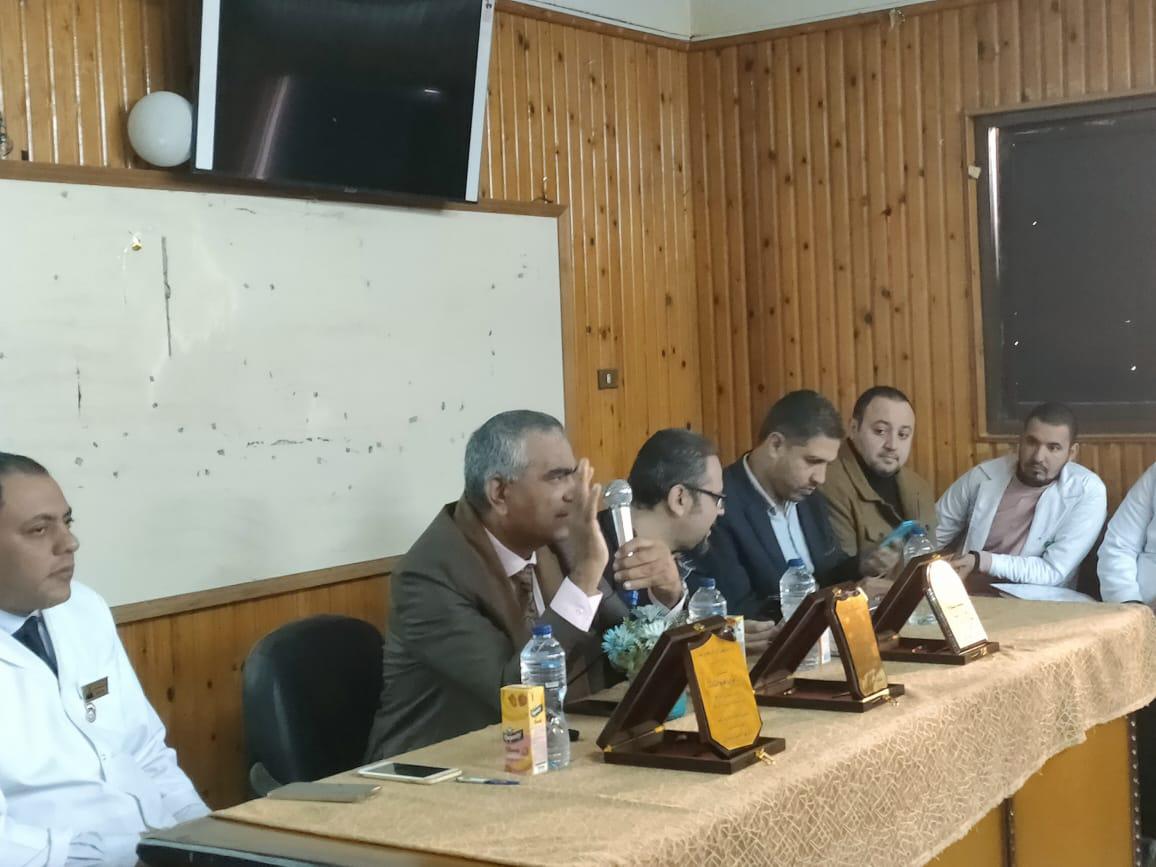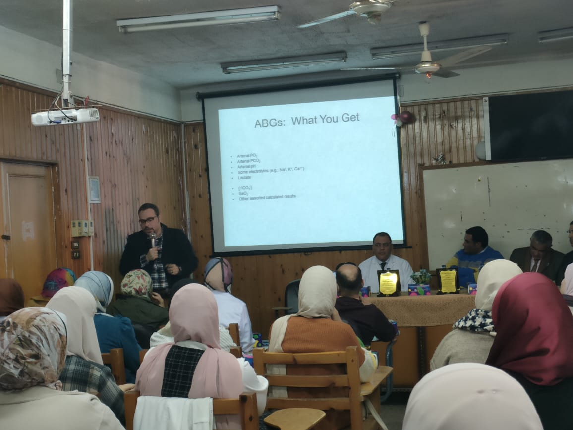 كما ألقى الدكتور سامة ابراهيم الشحات استشاري امراض الكلي وسفير الجمعية العالمية لامراض الكلي محاضرة علمية عن كيفية التعامل مع حالات الفشل الكلوي وقدم الدكتور أحمد البيلي وكيل المديرية واستشاري امراض الكلي محاضرة أخرى عن كيفية تقييم وقراءة تحليل الغازات بالدم وأهميته في التعامل مع كافة حالات الطواريء والحرجة.