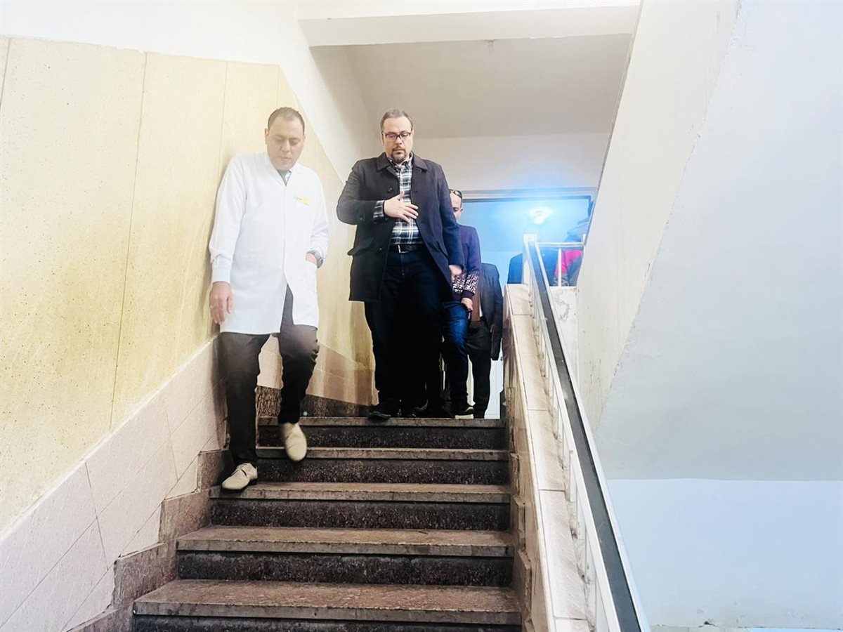 وتابع الزيارة بتفقد قسم الكلي الصناعي ووحدة معالجة المياه والتأكد من جودة الخدمة المقدمة لافتا إلى مراجعة تفعيل البروتوكولات الطبية الموحدة والمعممة من وزارة الصحة.