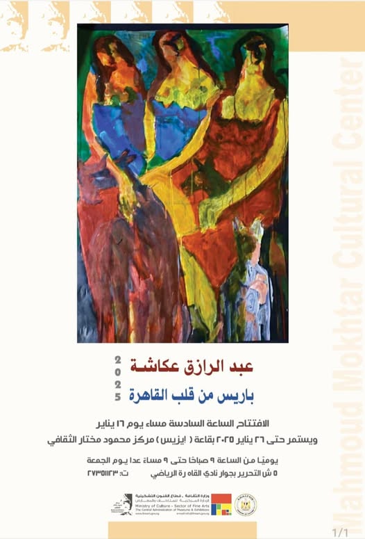 يفتتح الدكتور وليد قانوش رئيس قطاع الفنون التشكيلية معرض الفنان عبد الرازق عكاشة "باريس من قلب القاهرة" بقاعة إيزيس بمركز محمود مختار الثقافي، وذلك يوم الخميس الموافق 16 يناير2025 في تمام السادسة مساءً بحضور لفيف من الفنانين.