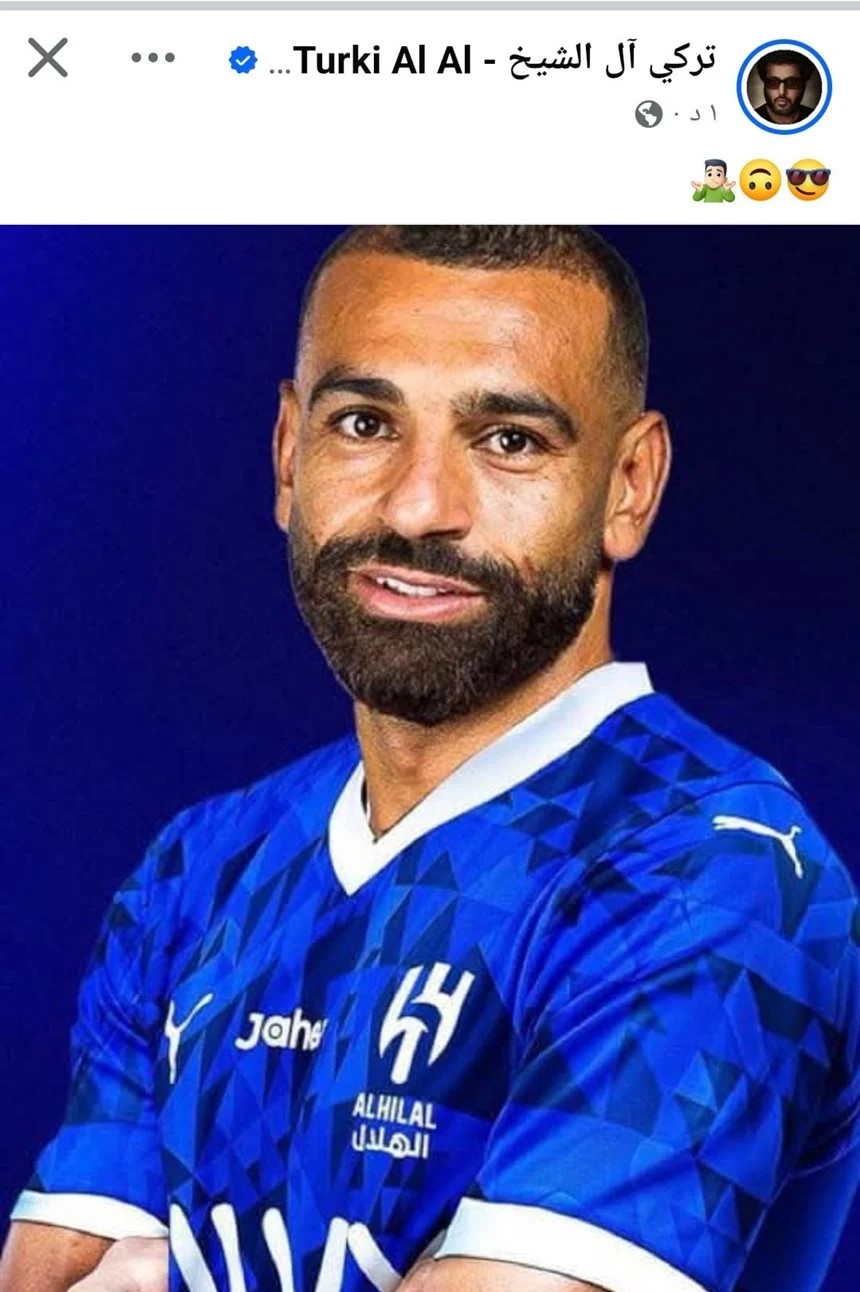 ونشر تركي آل الشيخ، وزير هيئة الترفيه بالسعودية، صورة لمحمد صلاح لاعب ليفربول الإنجليزي، بتيشيرت الهلال السعودي.