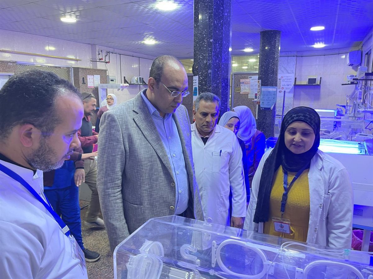 واستأنف مدكور الزيارة بتفقد الحضانات حيث حرص على الاستماع لشرح مفصل حول حالات الأطفال مشددًا على توفير أوجه الرعاية الطبية اللازمة لهم.