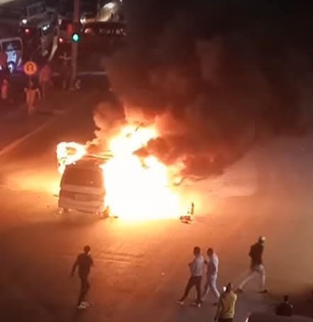 وتمكن سائق السيارة وركابها من النزول سريعا دون حدوث إصابات قبل اشتعال النار فيها بشكل كامل، وسط حالة من الرعب والفزع بين الركاب والمواطنين في الشارع.