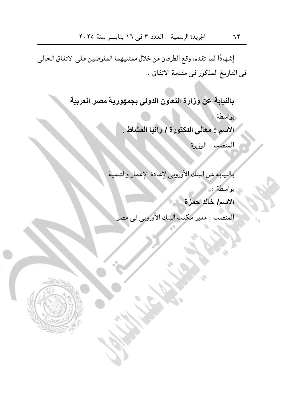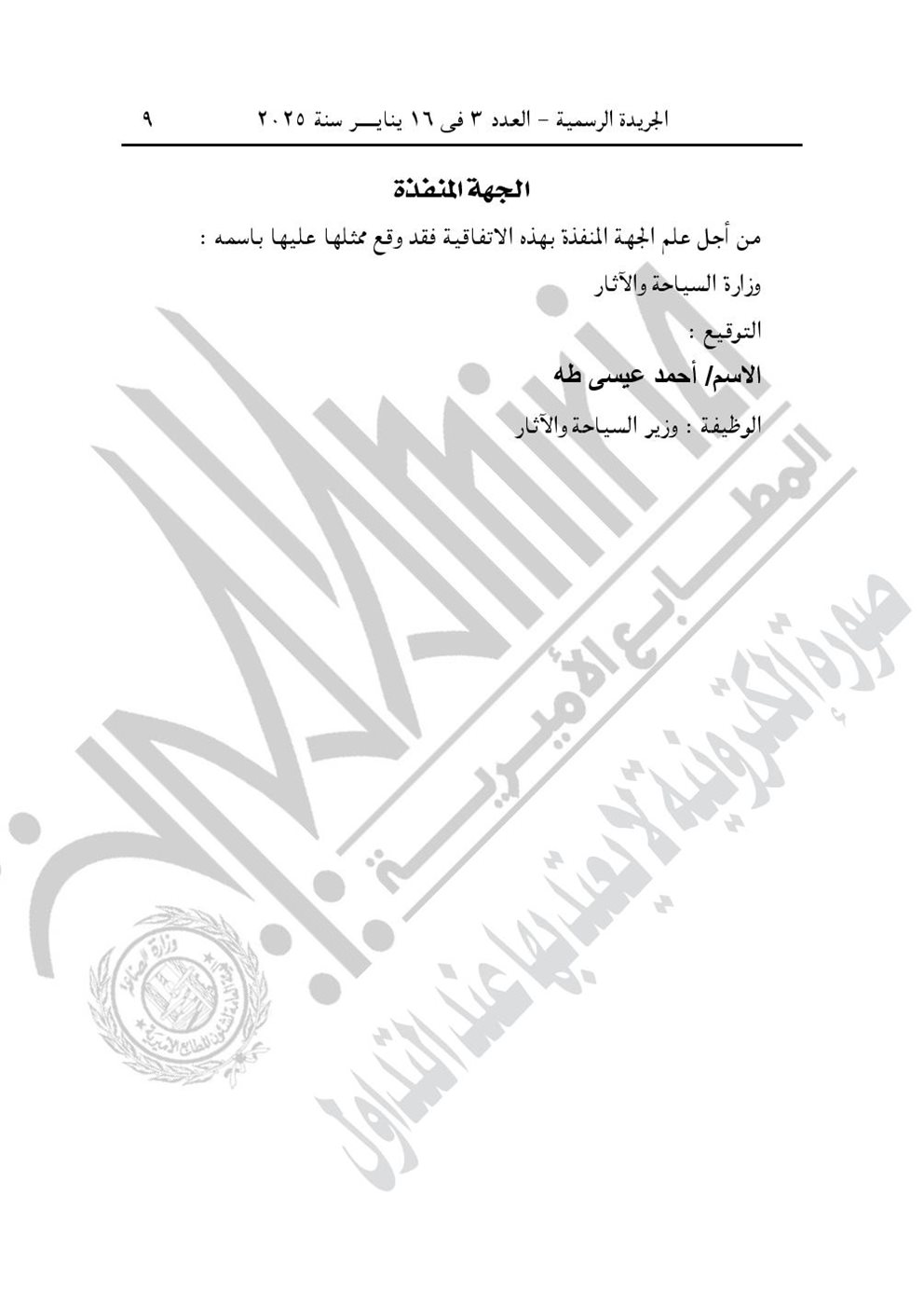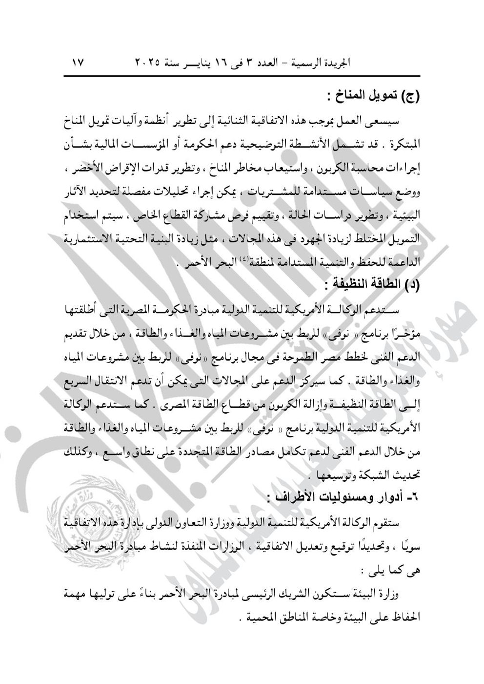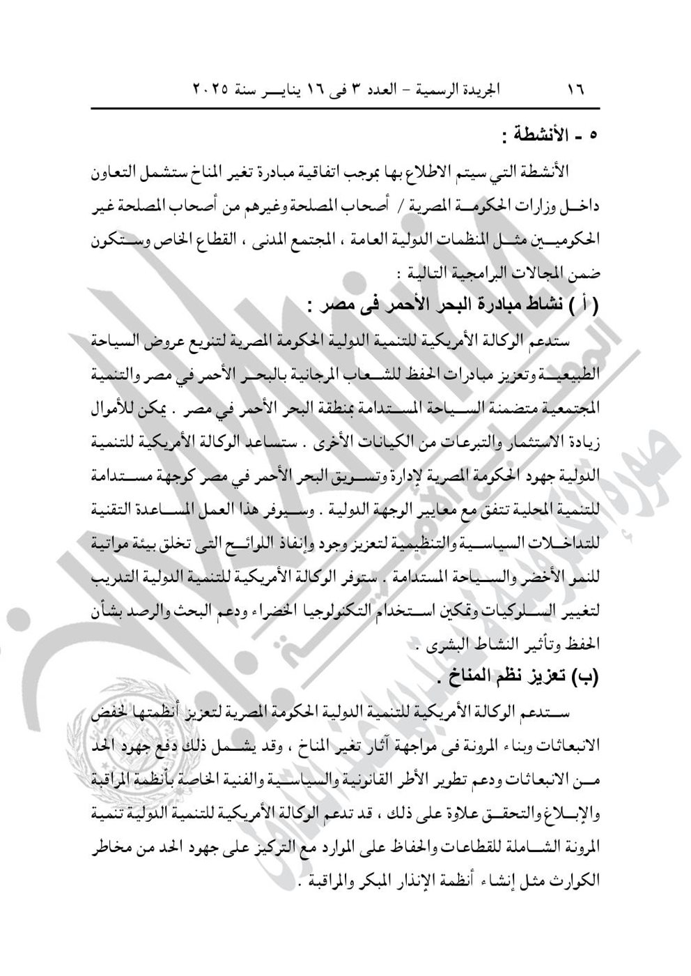 نشرت الجريدة الرسمية في عددها رقم 3، الصادر في 16 يناير 2025، 3 قرارات جمهورية جديدة اليوم للرئيس عبد الفتاح السيسي، بشأن الموافقة على التعديل الأول لاتفاقية "منحة المساعدة بين مصر وأمريكا بشأن مبادرة تغير المناخ، والموافقة على اتفاقية "إزالة الازدواج الضريبي" بين مصر وعمان، الموافقة على "التعديل الثانى لاتفاق منحة المساعدة الفنية لمشروع الخط الأول لمترو الأنفاق بالقاهرة.