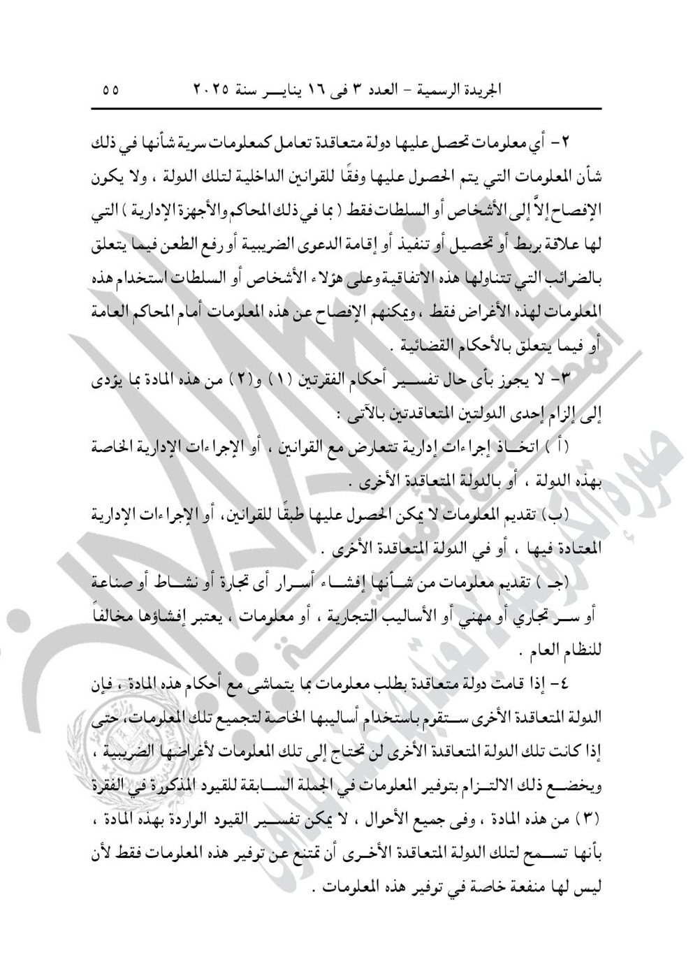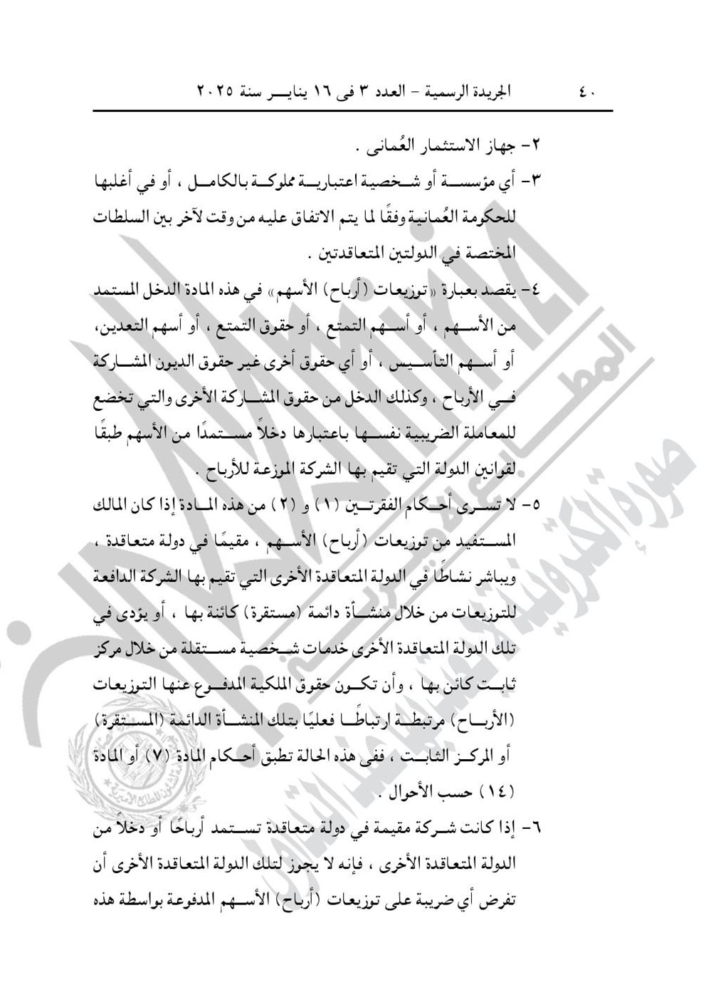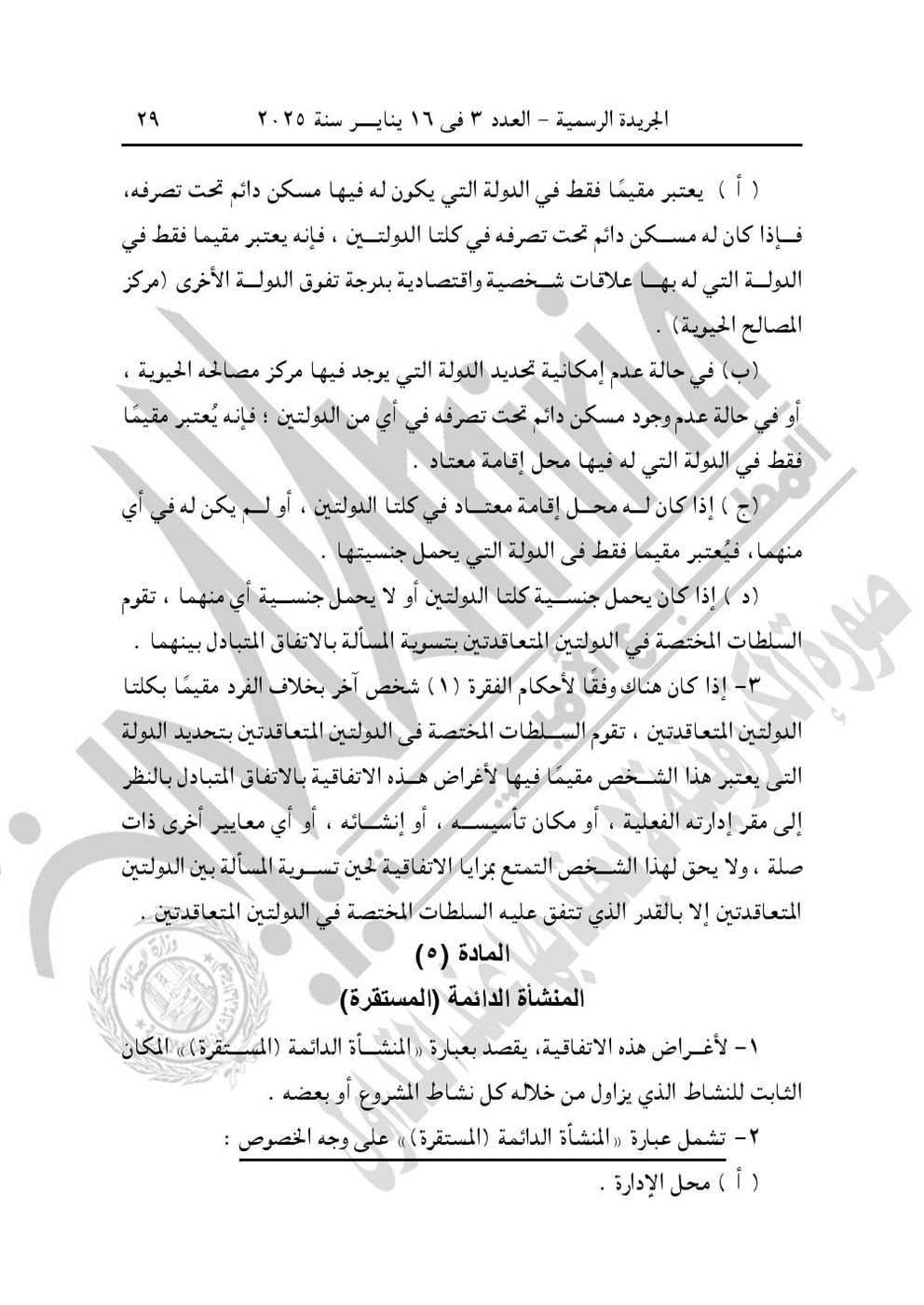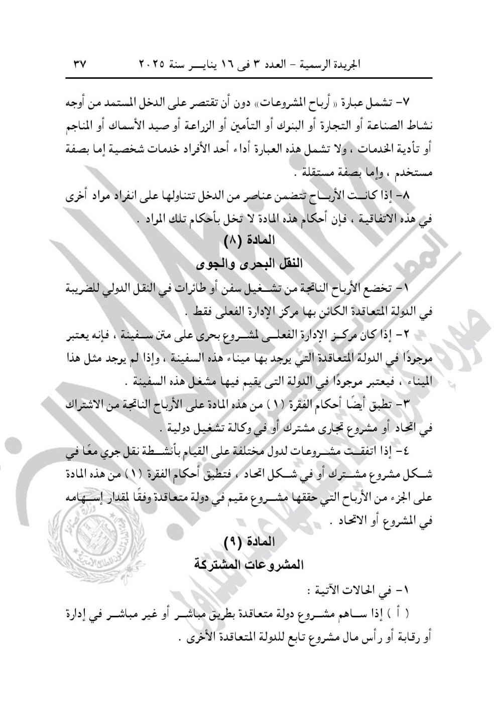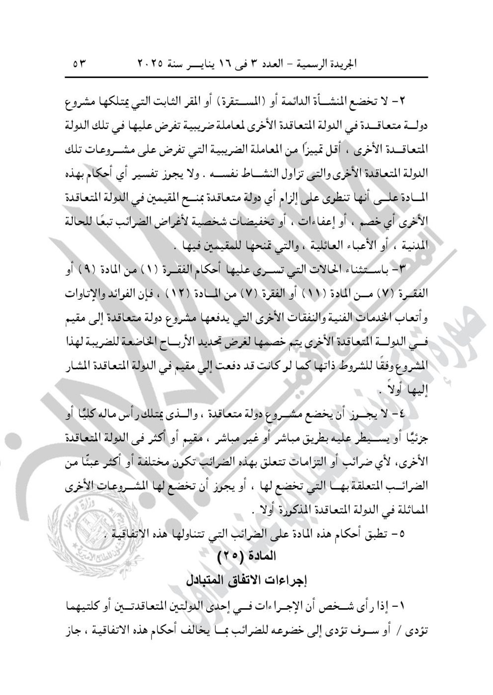 -وقرار رئيس الجمهورية رقـم 320 لسنة 2024، بشأن الموافقة على اتفاقية "إزالة الازدواج الضريبي" بالنسبة للضرائب على الدخل ومنع التهرب من الضرائب وتجنبها بين حكومة جمهورية مصر العربية وحكومة سلطنة عمان.