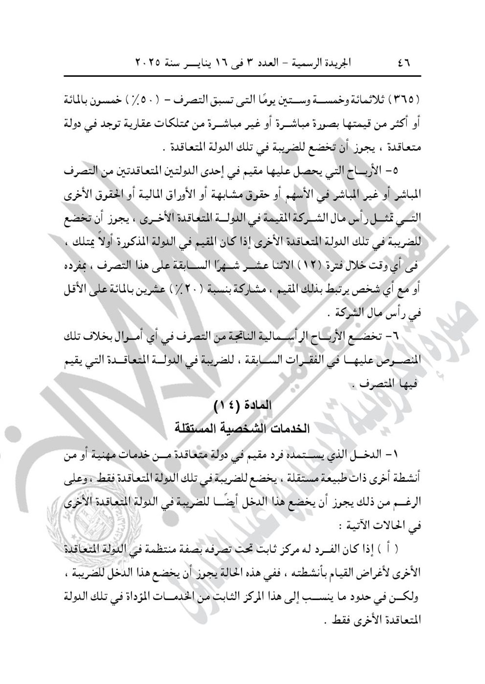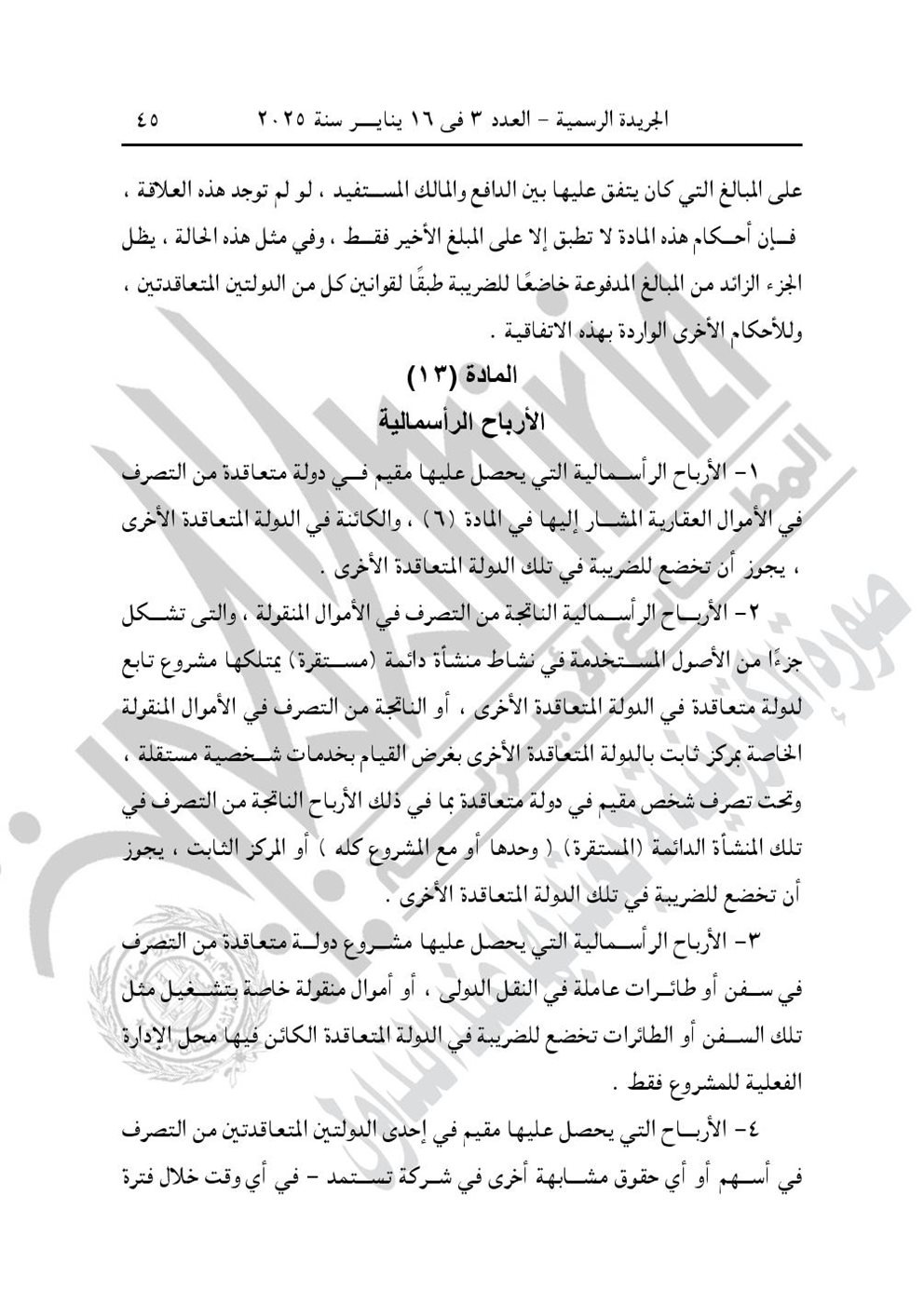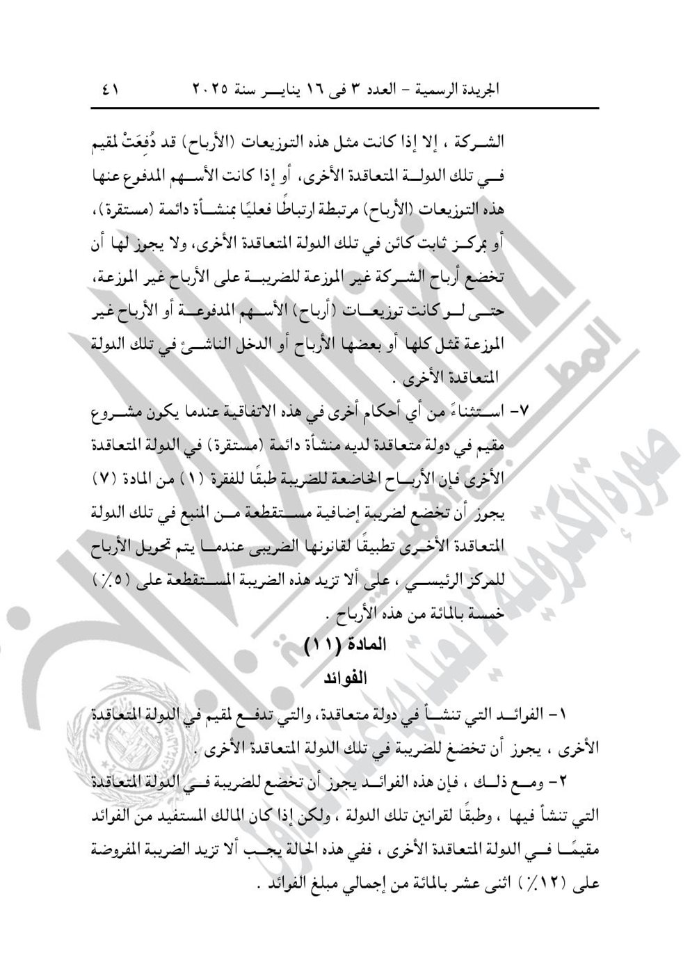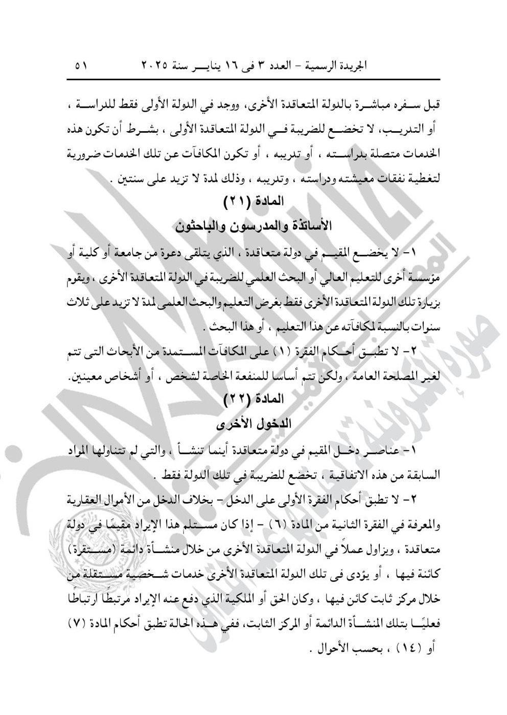 -وقرار رئيس الجمهورية رقـم 320 لسنة 2024، بشأن الموافقة على اتفاقية "إزالة الازدواج الضريبي" بالنسبة للضرائب على الدخل ومنع التهرب من الضرائب وتجنبها بين حكومة جمهورية مصر العربية وحكومة سلطنة عمان.