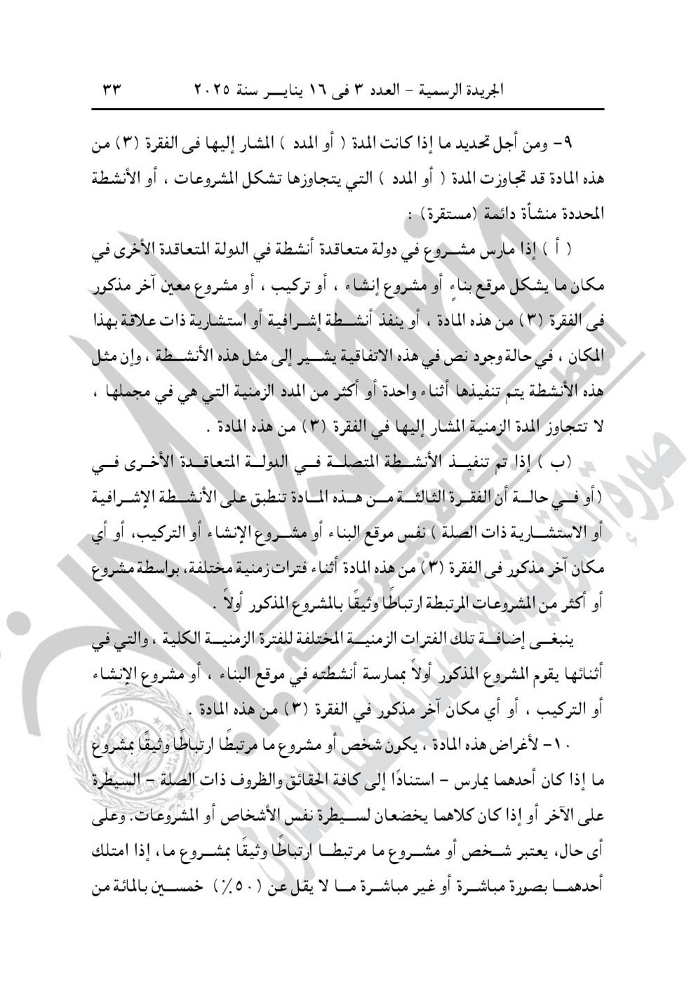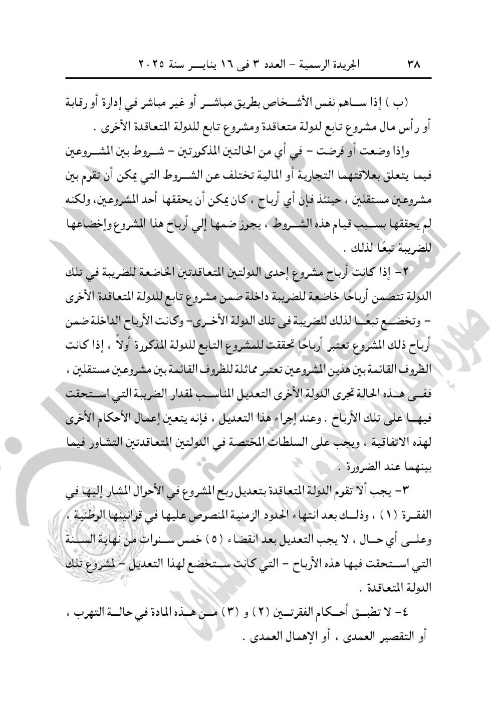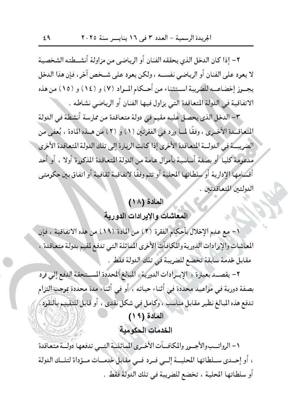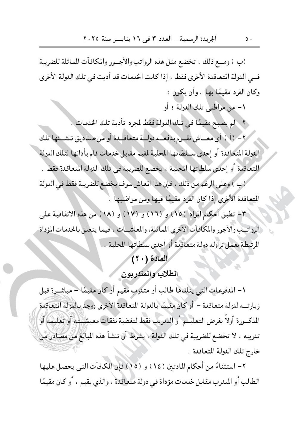 -وقرار رئيس الجمهورية رقـم 320 لسنة 2024، بشأن الموافقة على اتفاقية "إزالة الازدواج الضريبي" بالنسبة للضرائب على الدخل ومنع التهرب من الضرائب وتجنبها بين حكومة جمهورية مصر العربية وحكومة سلطنة عمان.