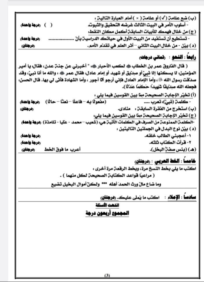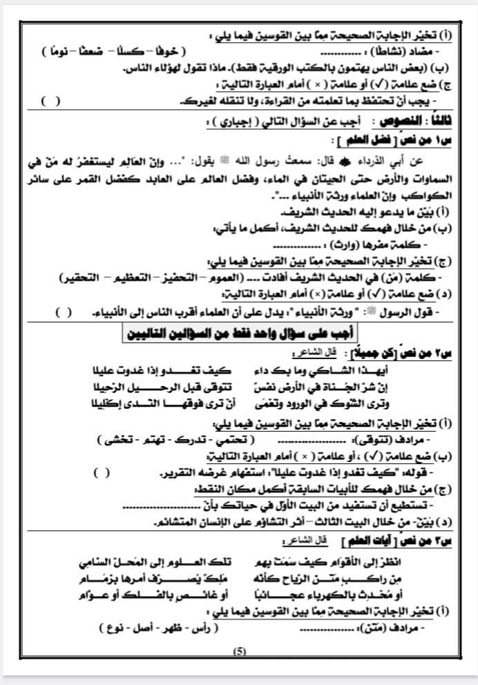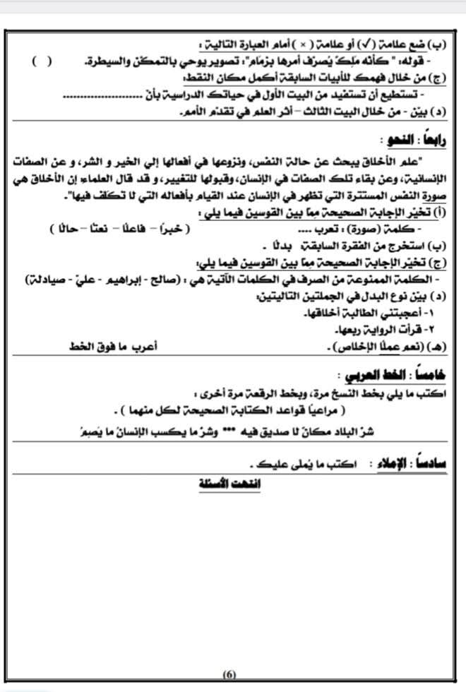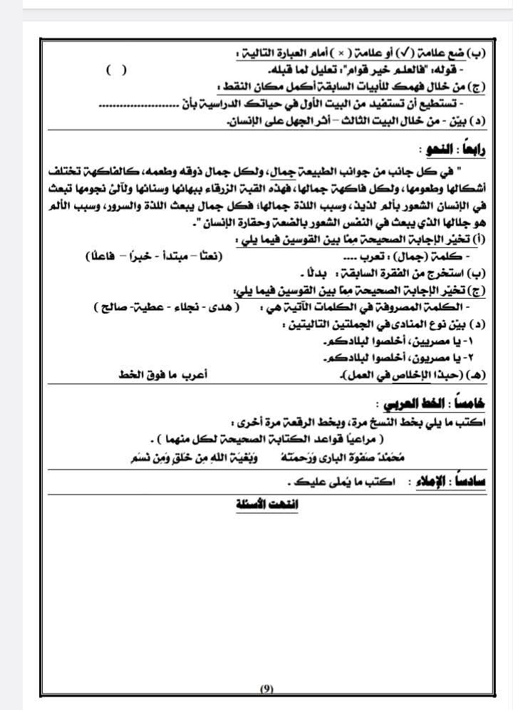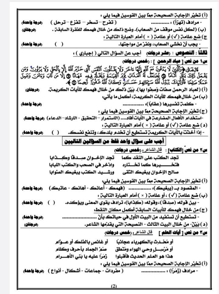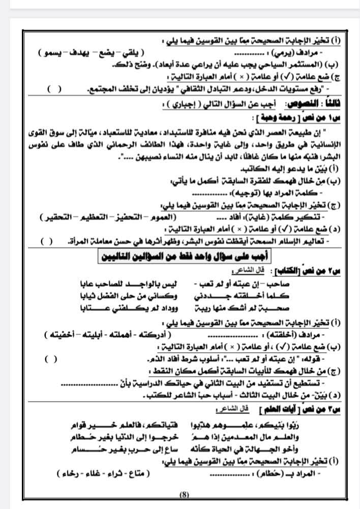 المراجعة النهائية، نماذج استرشادية شاملة في اللغة العربية والتربية الدينية لطلاب الشهادة الإعدادية