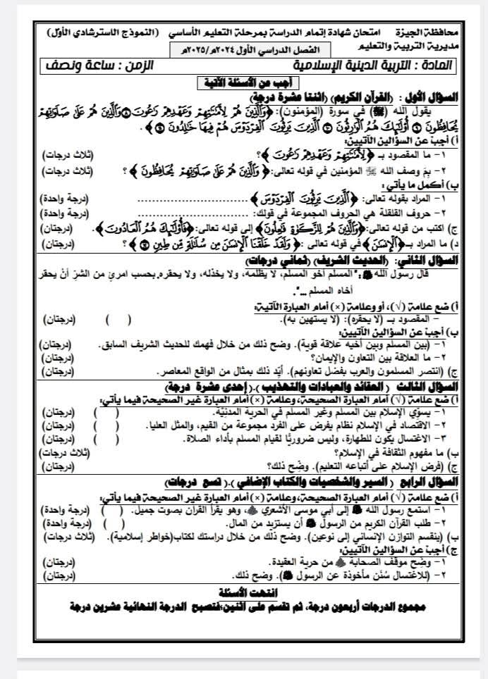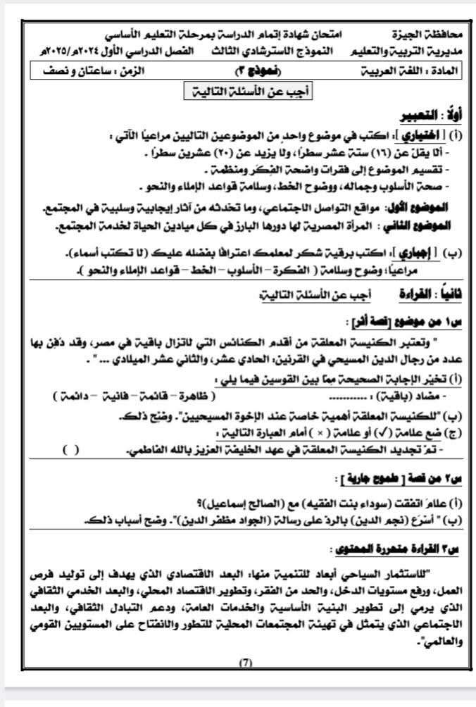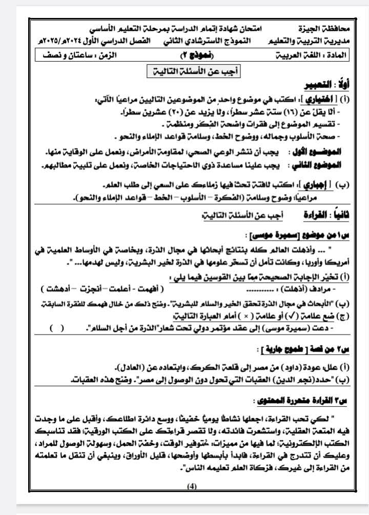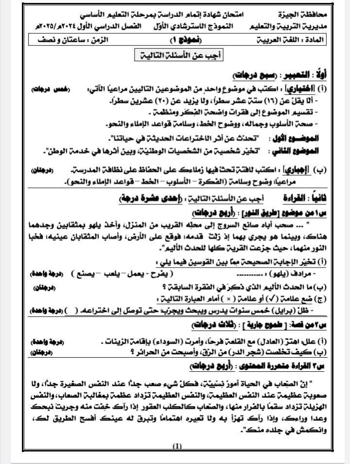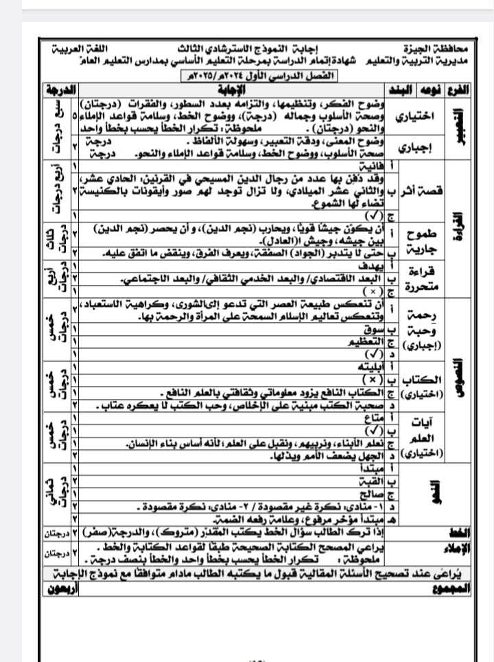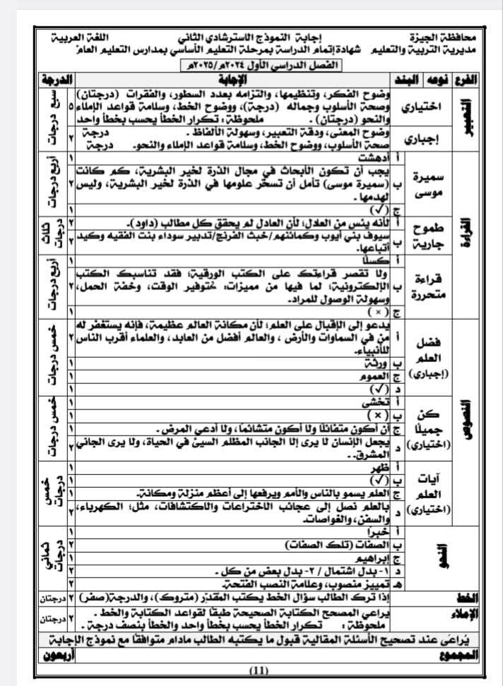 أعلنت مديرية التربية والتعليم بمحافظة الجيزة، عن توفير نماذج استرشادية شاملة لمادتَي اللغة العربية والتربية الدينية، لطلاب الشهادة الإعدادية.