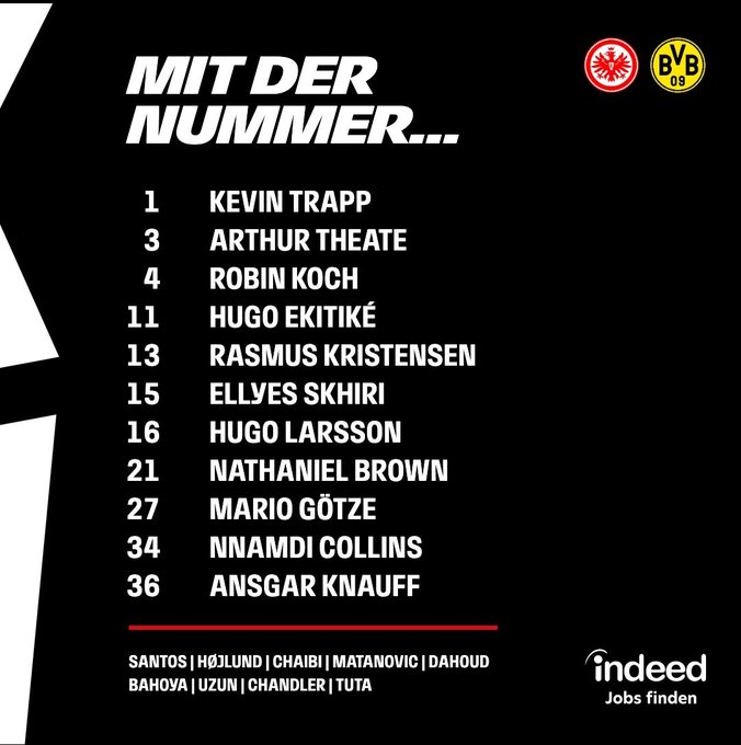 في غياب مرموش، التشكيل الرسمي لمباراة آينتراخت فرانكفورت ضد بروسيا دورتموند