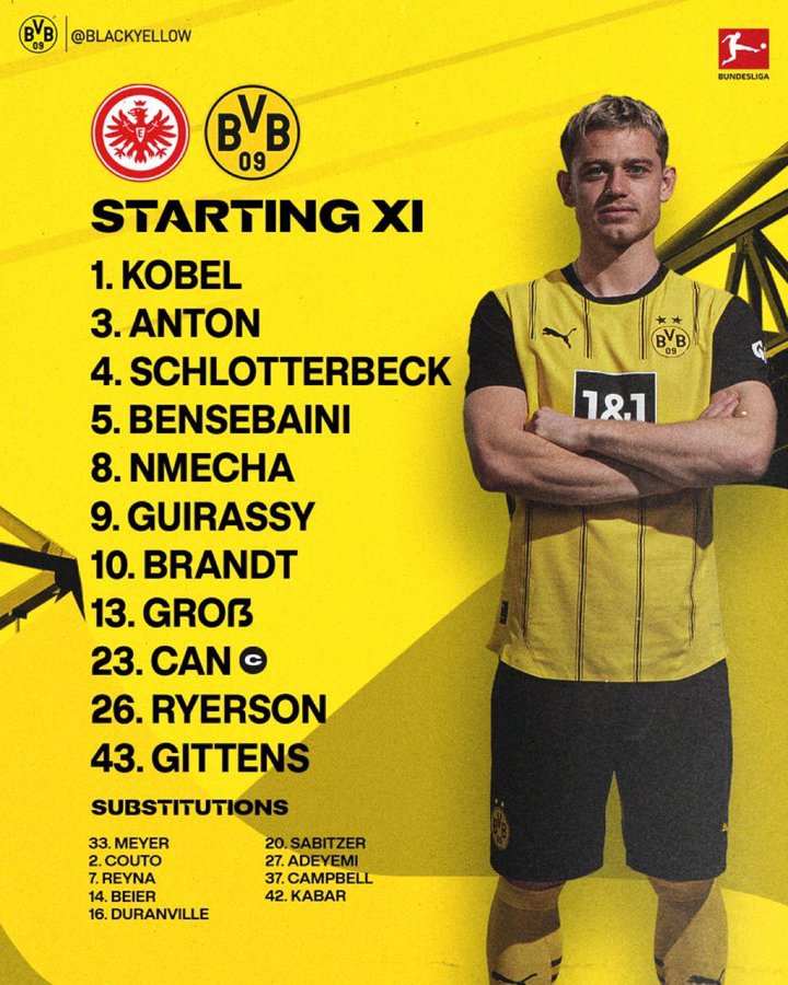 كشف فريقا آينتراخت فرانكفورت وبروسيا دورتموند عن تشكيل الفريقين في إطار منافسات الدوري الألماني لكرة القدم.