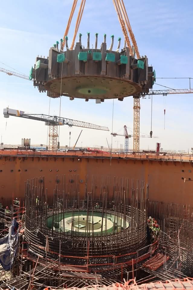 المحطات النووية لتوليد الكهرباء تعلن تركيب الهيكل المعدني أعلى مصيدة قلب المفاعل