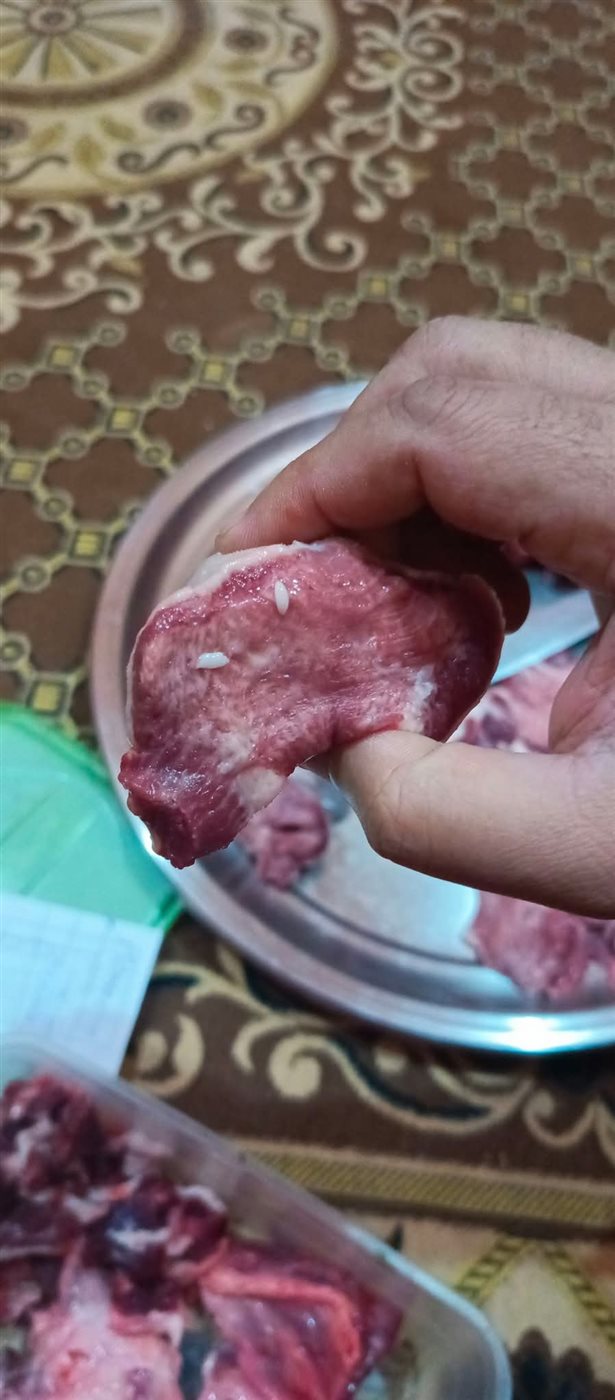 وأوضح بعض رواد الإنترنت أن تلك اللحوم تحتوي على ديدان لا يمكن ملاحظتها بسهولة بسبب صغر حجمها، مما يعرض صحة المستهلكين لخطر داهم.