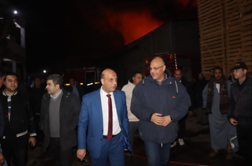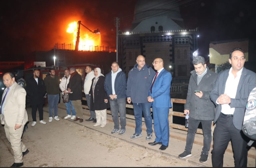 محافظ القليوبية ينتقل لمكان حريق ثلاجة الخضار والفاكهة بالقناطر الخيرية