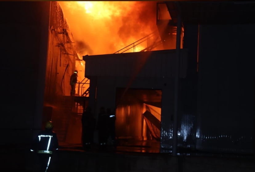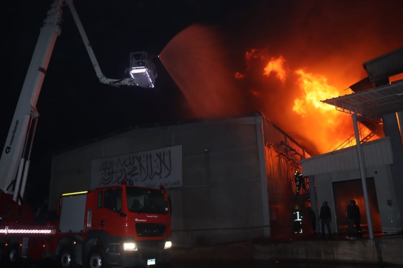 حريق هائل بثلاجة مواد غذائية بالقناطر الخيرية القليوبية