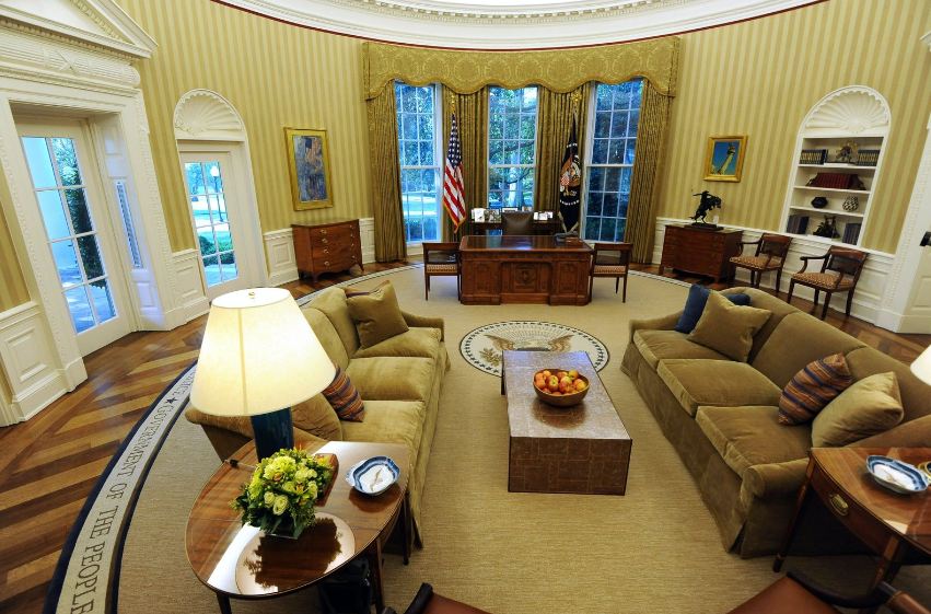 منذ أكتوبر عام 1909، أصبح "المكتب البيضاوي" بالجناح الغربي للبيت الأبيض المكتب الرسمي لرؤساء الولايات المتحدة الأمريكية المتعاقبين على السلطة، واستمد المكتب المذكور إسمه من تصميمه على شكل بيضاوي.