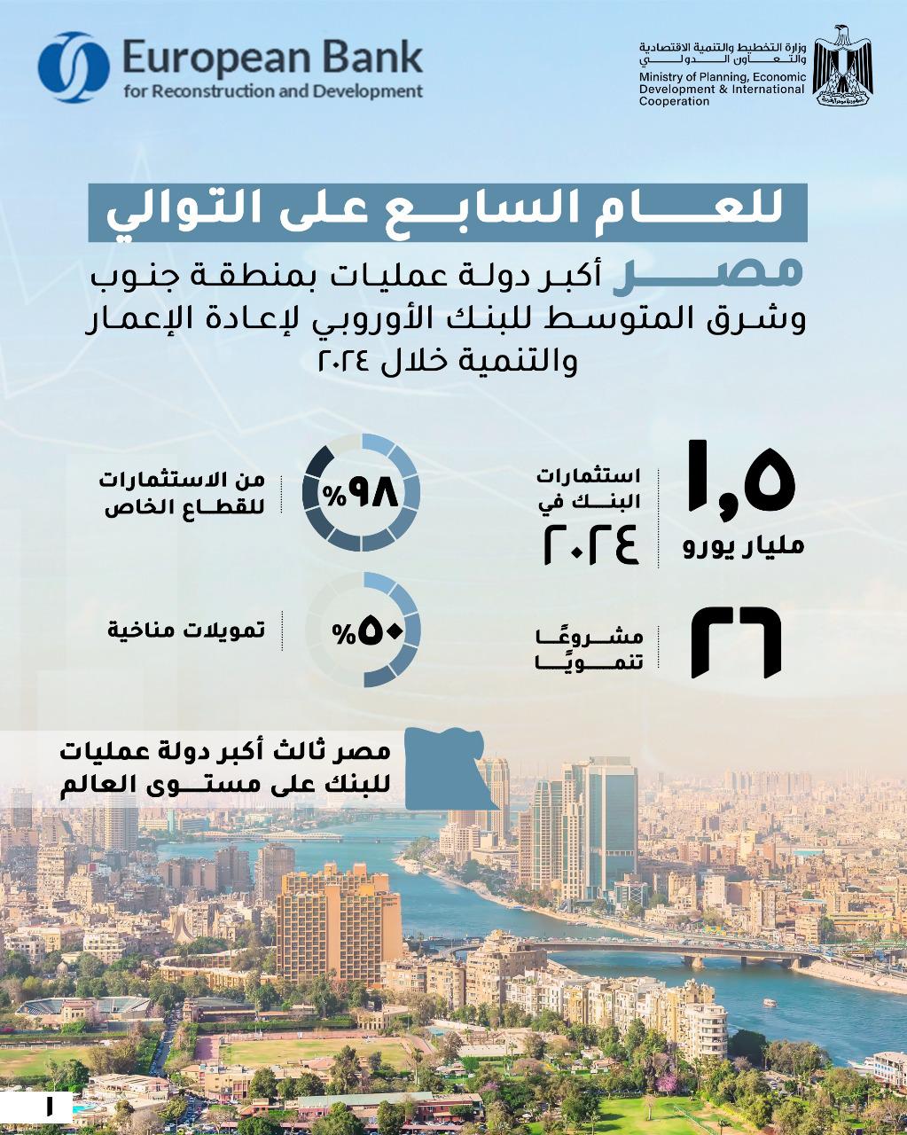 مصر أكبر دولة عمليات للبنك الأوروبي لإعادة الإعمار والتنمية خلال 2024 (إنفوجراف)